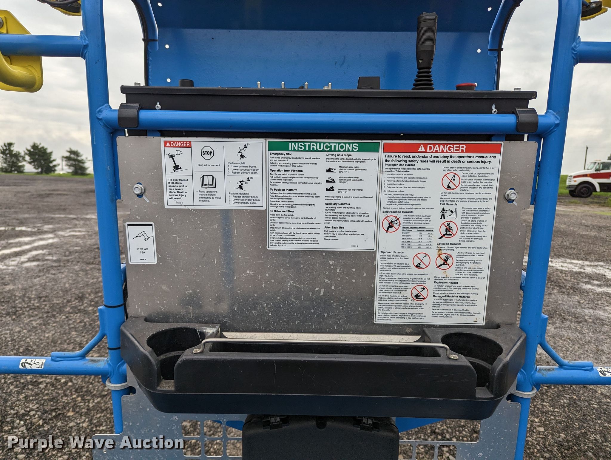 2020 Genie Z-45/25J boom lift. Hours: 231 on meter, Serial: Z4525F-61701. Electric Motor Volts: 120-230V. Features Maximum lift capacity: 500 lbs, Maximum reach length: 24' 1", Maximum lift height: 45' 9", Hydraulic extendable jib, Platform: 72" L x 30" W, AC power outlet, Controls: Platform, Ground, Platform rotation: Hydraulic. Tires Tire size: 9-14.5, Foam filled. 15107 North 137th East Avenue. Collinsville, OK 74021