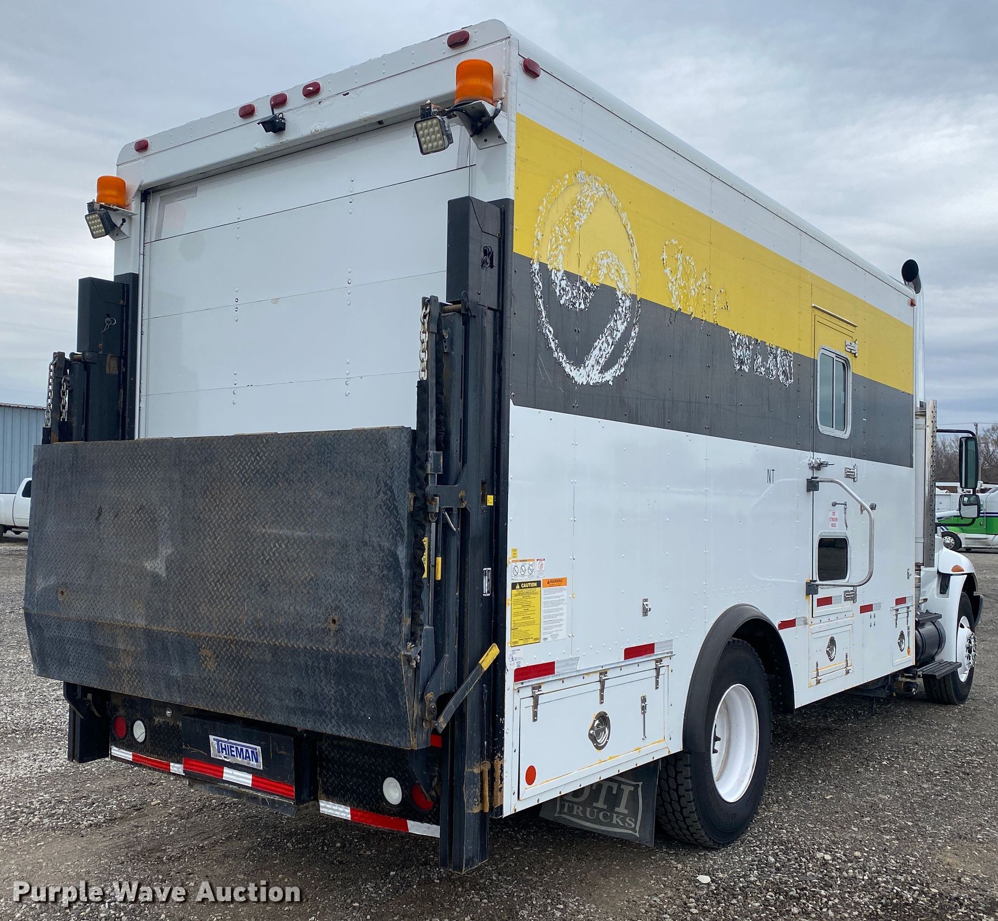 2004 International 4400 box truck. Miles: 89,018 on odometer, Hours: 12,601 on meter, VIN: 1HTMKAAN54H652036. Engine Displacement: 7.6L, Cylinders: 6, Fuel type: Diesel. Transmission Automatic. Chassis Axles: Single, Suspension: Spring, Brakes: Air. Interior AC, Heat, Cruise control. Features Box bed Custom Bodies, Inc, Serial: 0P308002, 18' L x 94" W x 91" H, Floor: Aluminum, End gate lift Thieman VL40, Capacity: 4,000 lbs.. Tires Size: 11R22.5. Notes Contents included, Dash warning indicator: Check AC. Oklahoma title. Title distribution may be delayed up to 14 days from verification of funds. 15107 North 137th East Avenue. Collinsville, OK 74021