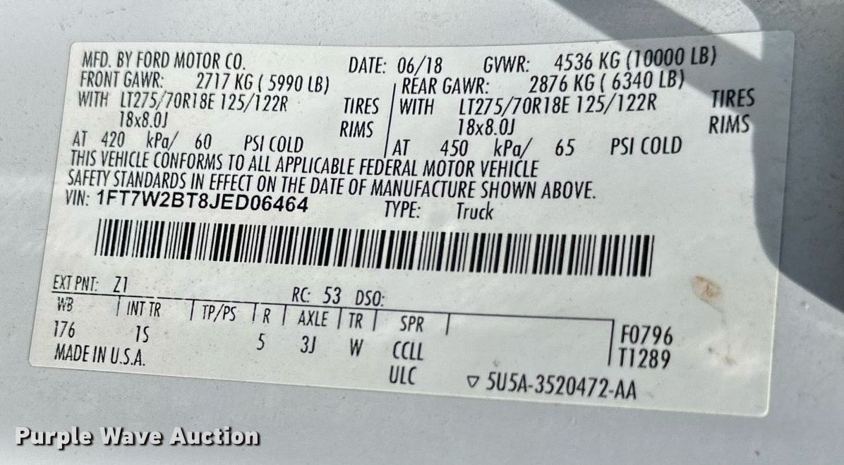 Purple Wave is selling a used 3/4 or 1 Ton Pickup or Van in Kansas. This item is a 2018 Ford F250 Super Duty Crew Cab pickup truck with the following: Miles: 167,713 on odometer, VIN: 1FT7W2BT8JED06464