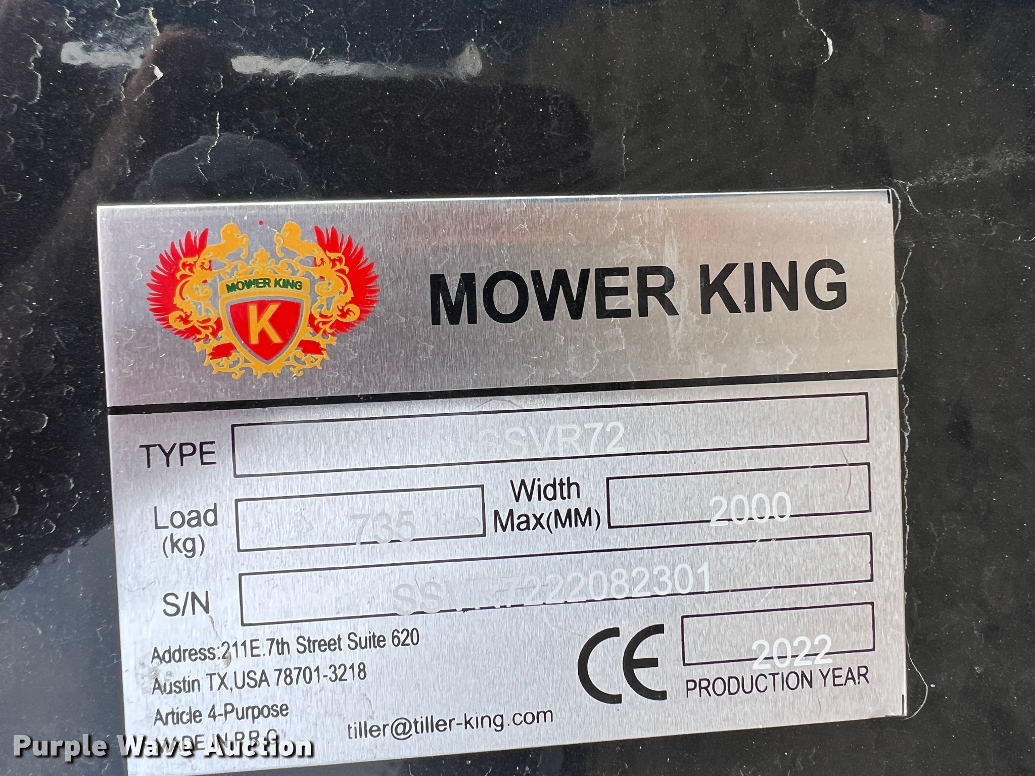 Purple Wave is selling a used Skid Steer Attach. in Kansas. This item is a 2022 Mower King SSVR72 skid steer roller with the following: Serial: SSVR7222082301, Width: 72"