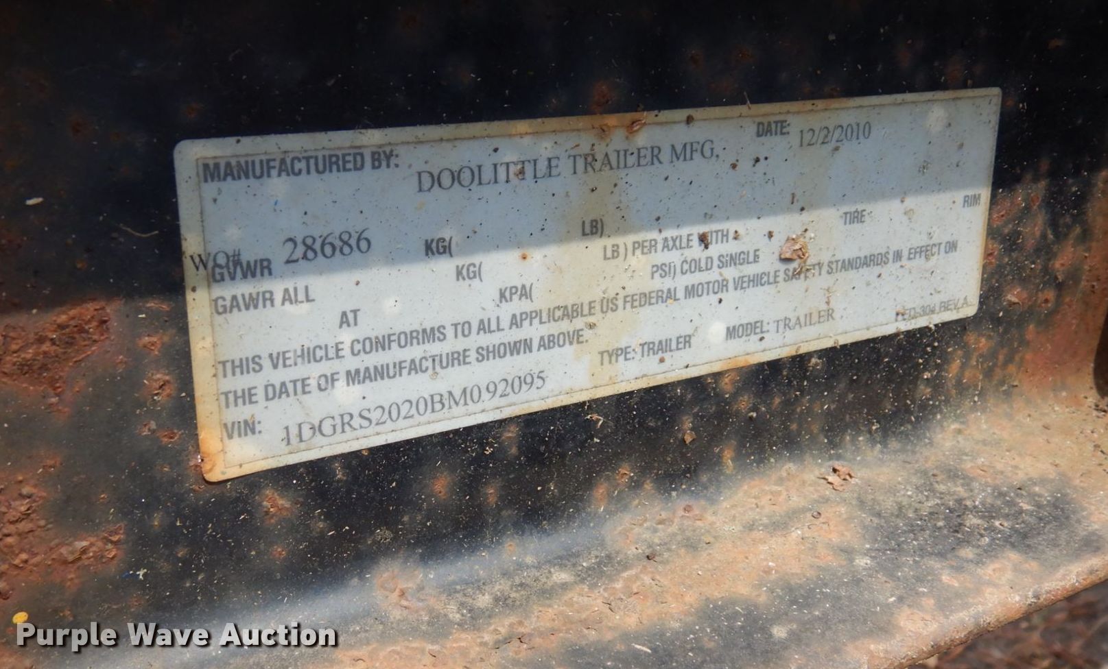 Purple Wave is selling a used Equip. Trailer in Minnesota. This item is a 2011 Doolittle tilt deck equipment trailer with the following: VIN: 1DGRS2020BM092095