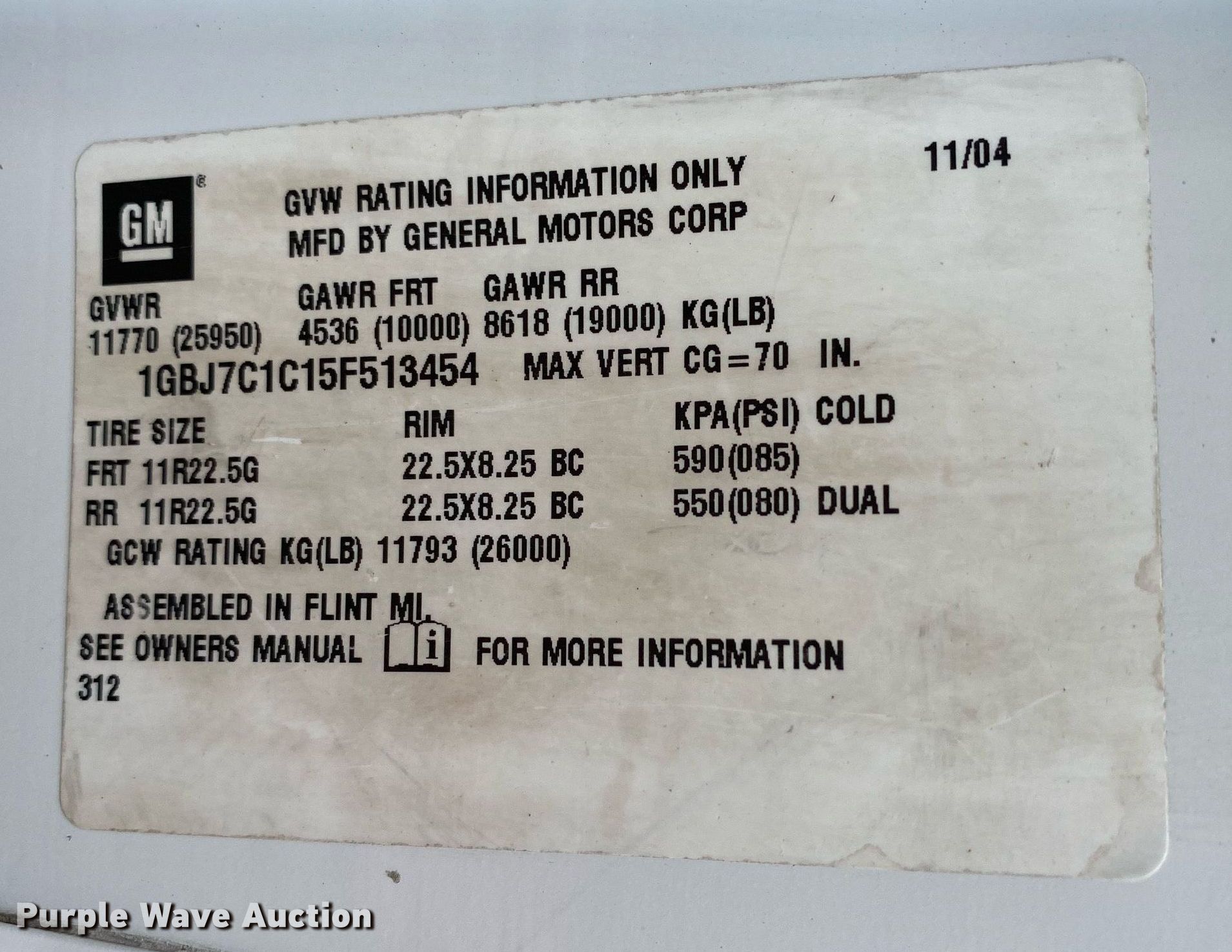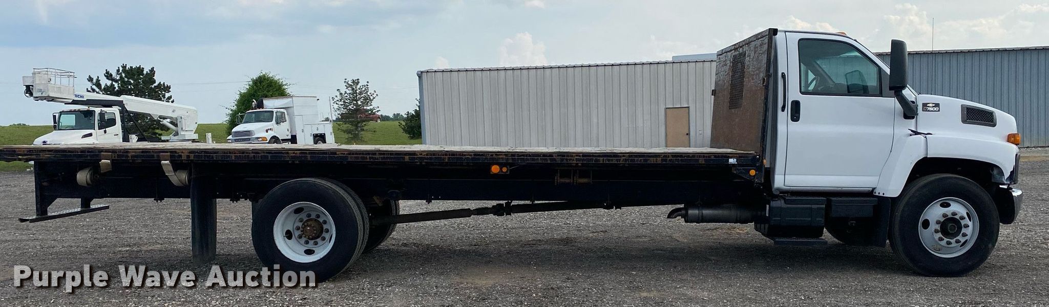 Purple Wave is selling a used Flat Bed Truck in Oklahoma. This item is a 2005 Chevrolet C7500 flatbed truck with the following: Miles: 179,969 on odometer, VIN: 1GBJ7C1C15F513454