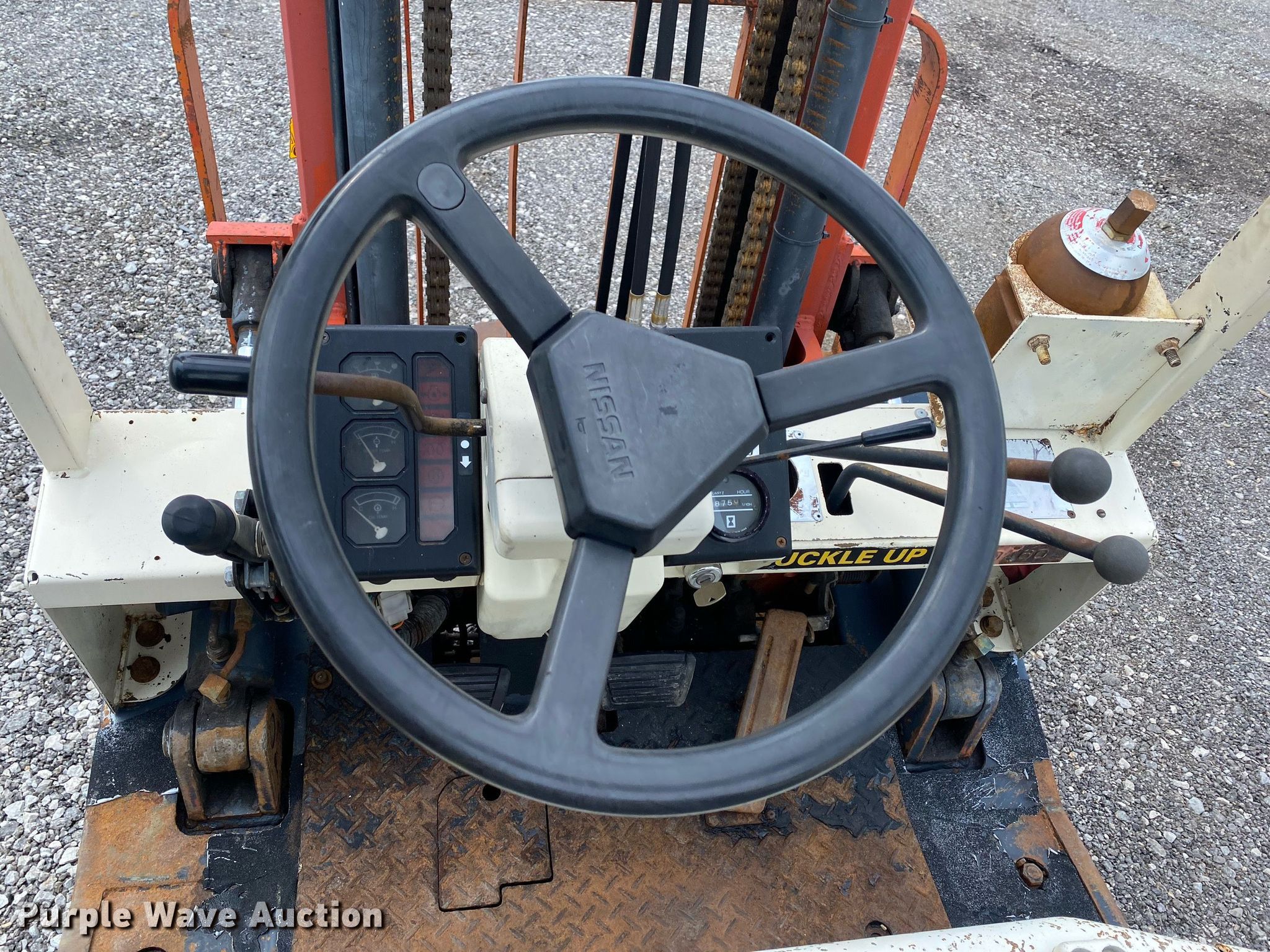 Purple Wave is selling a used Warehouse Forklift in Oklahoma. This item is a Nissan 50 forklift with the following: Hours: 6,875 on meter