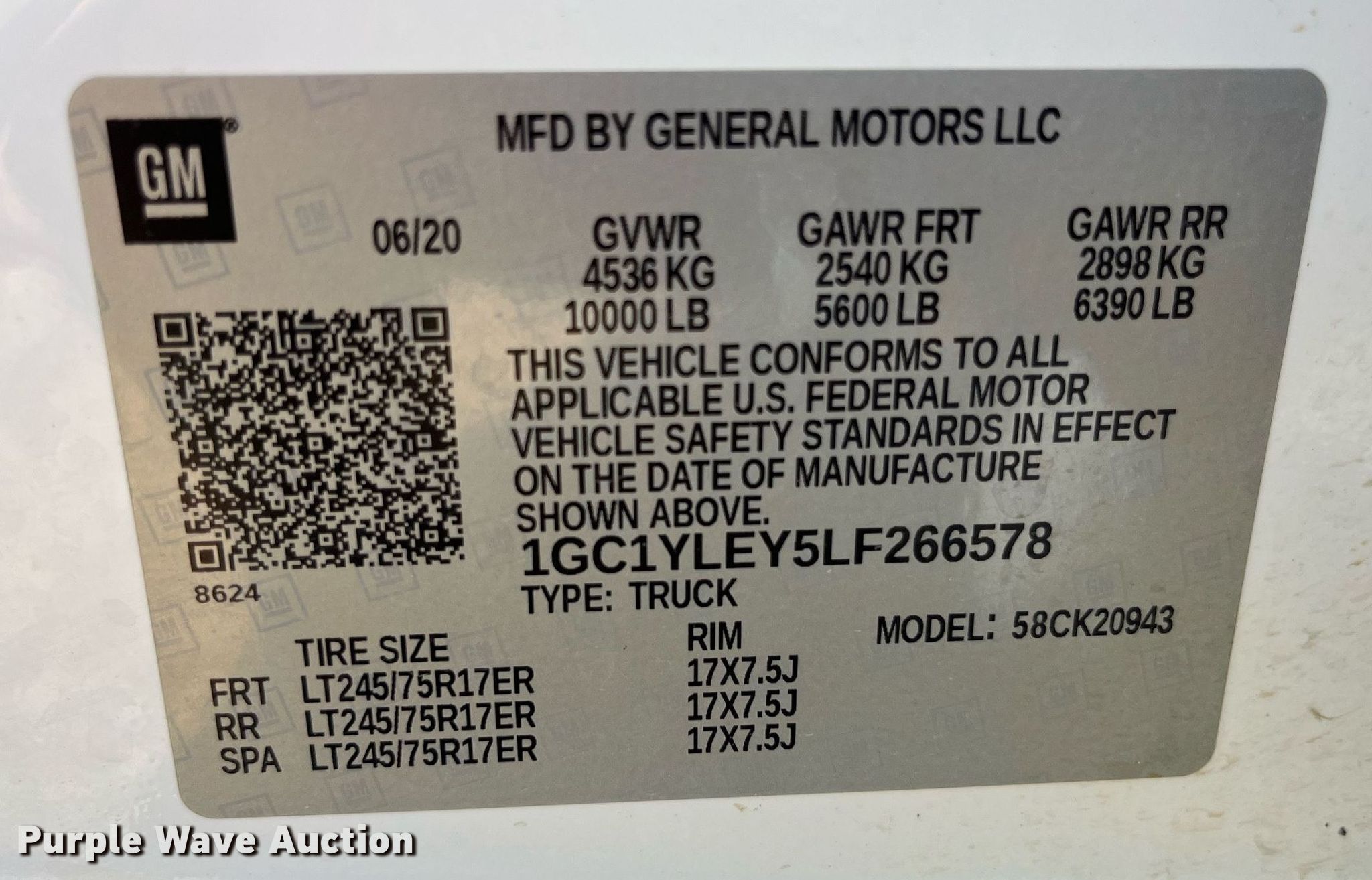 Purple Wave is selling a used 3/4 or 1 Ton Pickup or Van in Kansas. This item is a 2020 Chevrolet Silverado 2500HD Crew Cab utility bed pickup truck with the following: Miles: 76,033 on odometer, VIN: 1GC1YLEY5LF266578
