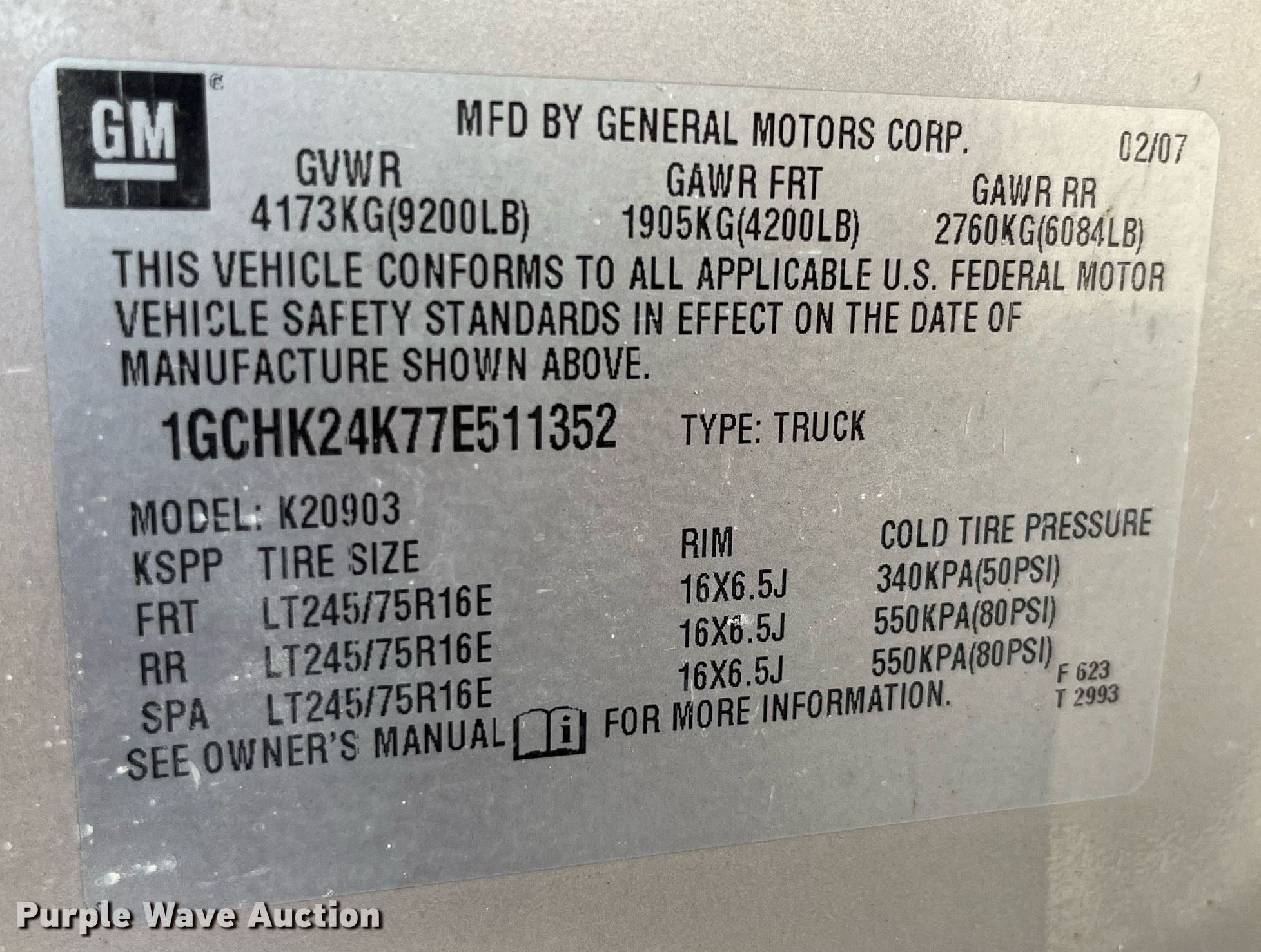 Purple Wave is selling a used 3/4 or 1 Ton Pickup or Van in Illinois. This item is a 2007 Chevrolet Silverado 2500HD pickup truck with the following: Miles: 175,458 on odometer, VIN: 1GCHK24K77E511352