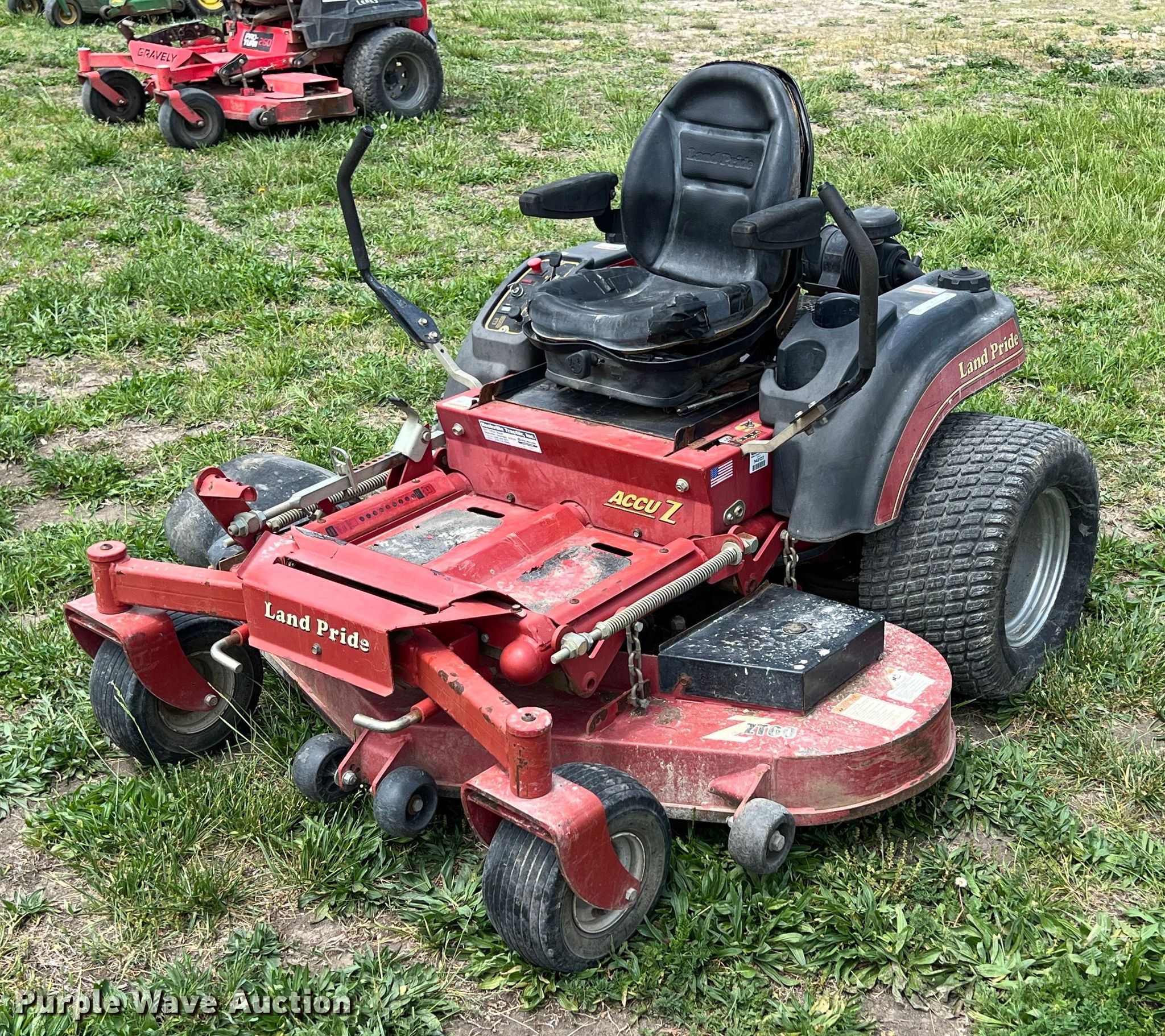 Land Pride Accu Z ZTR lawn mower. Hours: 607 on meter, Cutting width: 60", Serial: 548122. Engine Kawasaki, Cylinders: 2, Fuel type: Gas. Transmission Hydrostatic. Tires Front: 13x6.50-6, Rear: 24x12.00-12. Irrigation & Turf. Gas, KS 66749