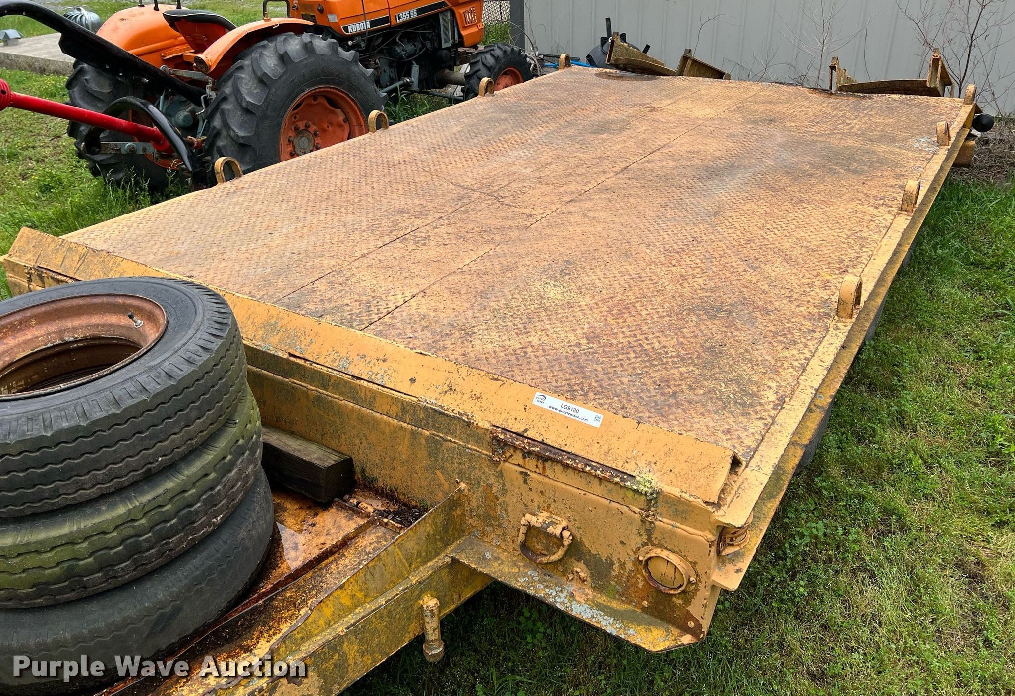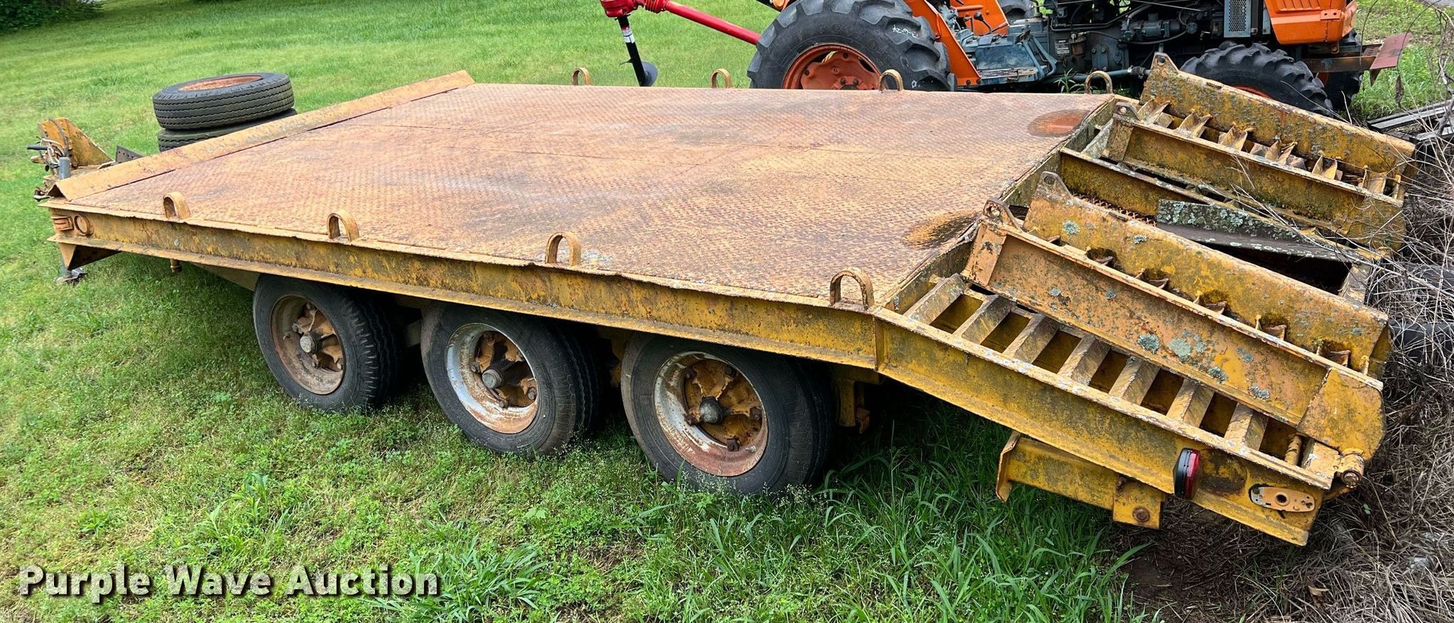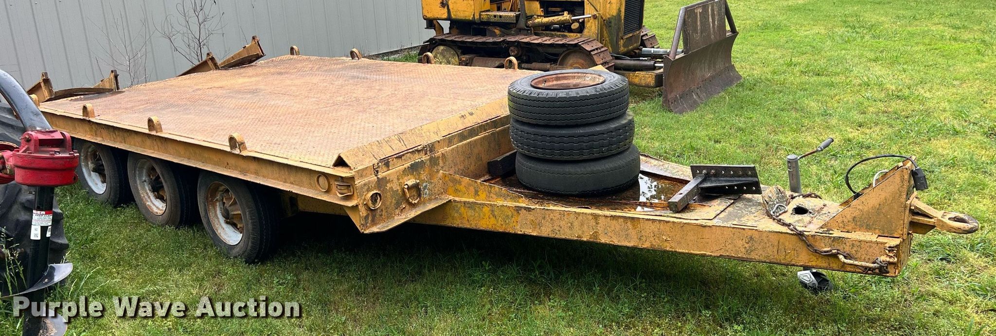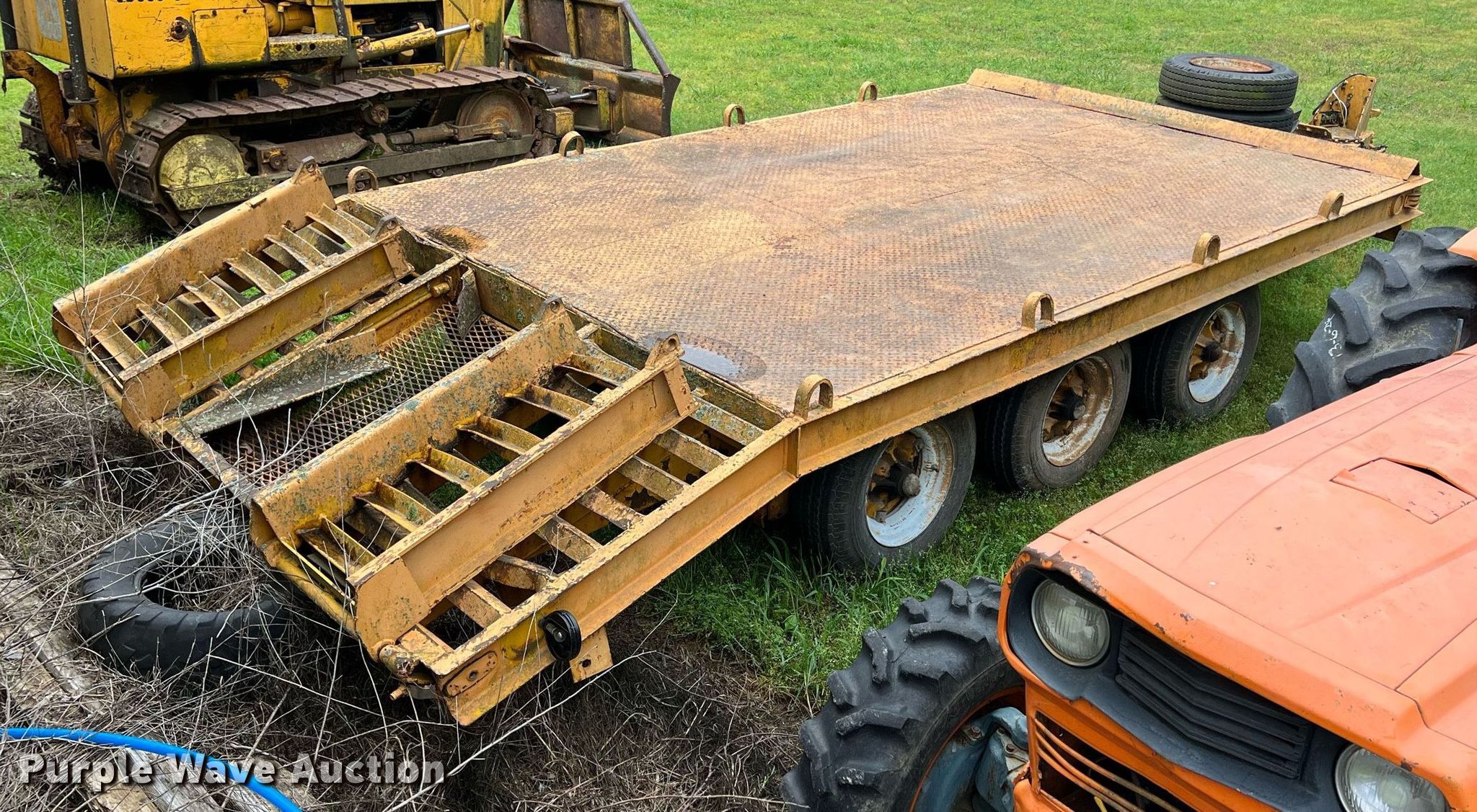 Purple Wave is selling a used Equip. Trailer in Oklahoma. This item is a Shop built equipment trailer with the following: Overall: 23' L x 7' 11" W, Deck: 12' L x 7' 11" W, Tail length: 3' 6", Ramps: Manual, Length: 3'