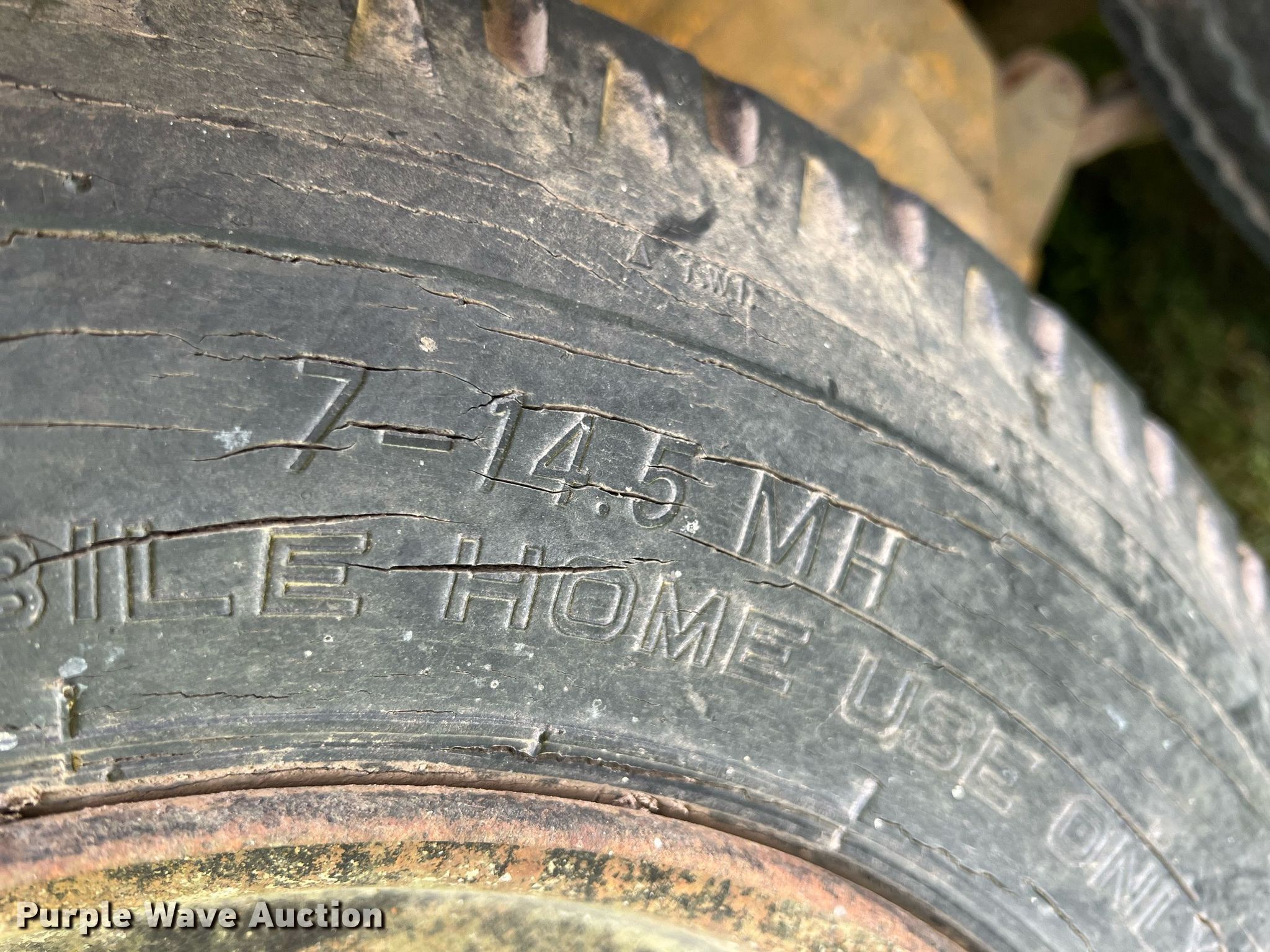 Shop built equipment trailer. Dimensions. Overall: 23' L x 7' 11" W, Deck: 12' L x 7' 11" W, Tail length: 3' 6", Ramps: Manual Length: 3'. Features Deck type: Steel. Chassis Hitch: Pintle, Landing gear: Single, Suspension: Spring, Brakes: Electric, Axles: Triple. Tires Size: 7-14.5. Transfer of ownership documentation will be a bill of sale. Strang, OK 74367
