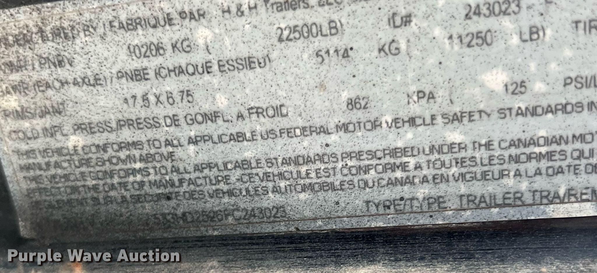 Purple Wave is selling a used Equip. Trailer in Arkansas. This item is a 2015 H&H Trailers equipment trailer with the following: VIN: 533HD2526FC243023