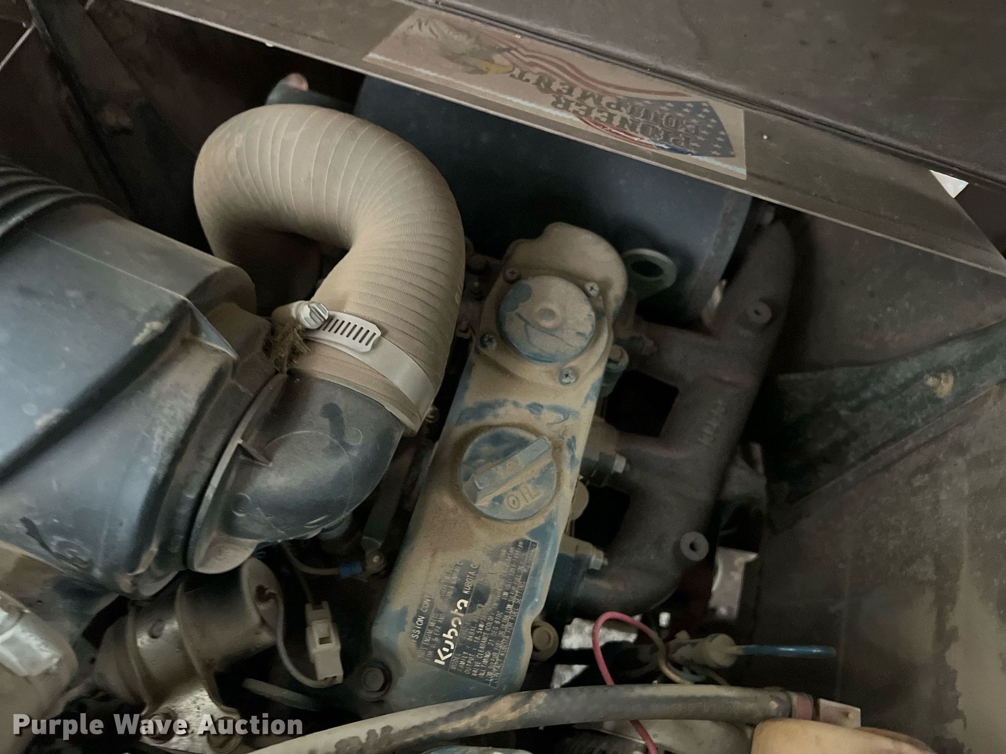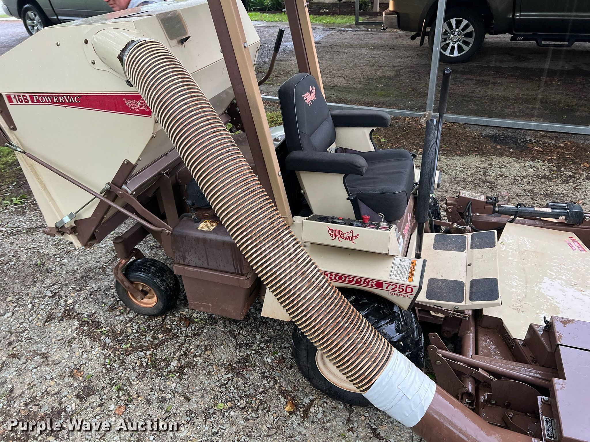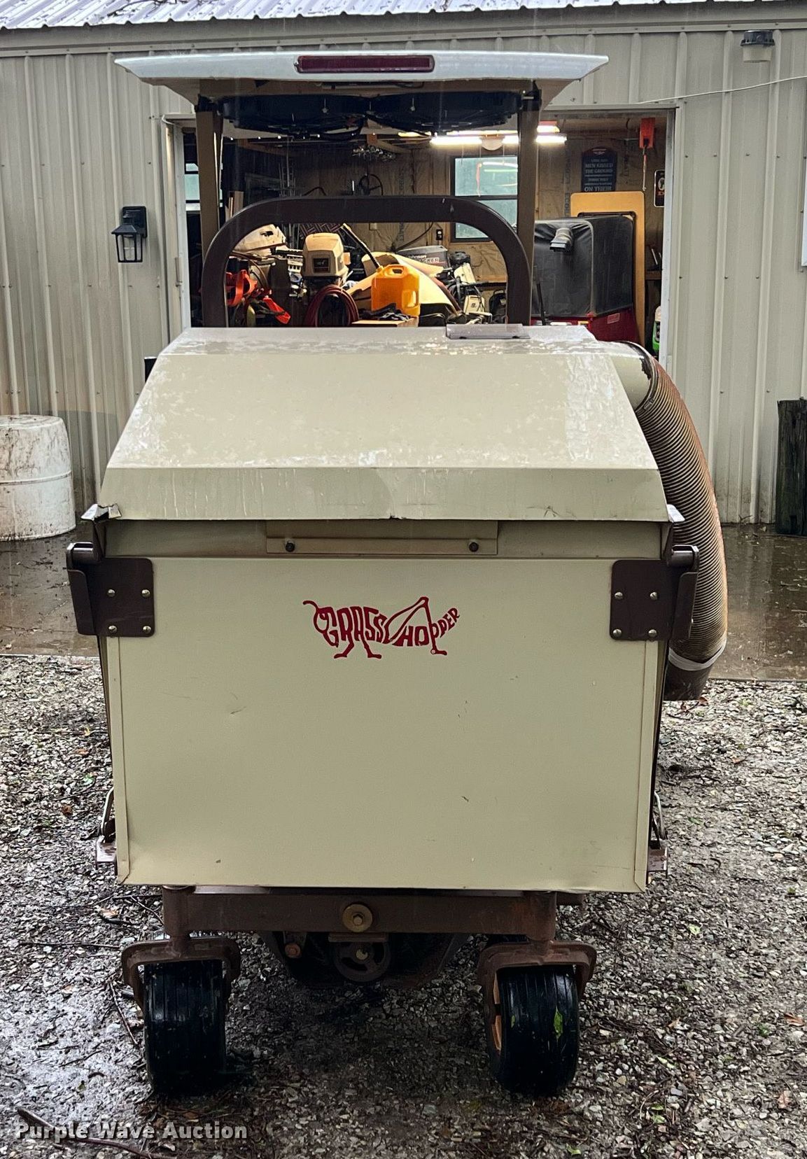 Grasshopper 725D ZTR lawn mower. Hours: 365 on meter, Cutting width: 61", Serial: 5915326. Engine Kubota, Cylinders: 3, Fuel type: Diesel. Transmission Hydrostatic. Features Grass bagger PowerVac 15B, Hydraulic fold decks, Hydraulic front deck lift. Tires Front: 22x11-10, Rear: 18x6.50-6. 419 North 3rd Street. Chetopa, KS 67336