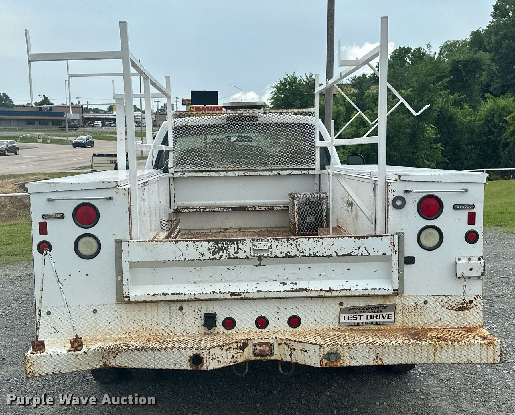 This 2002 Ford F350 Super Duty utility bed pickup truck will sell to the highest bidder regardless of price.