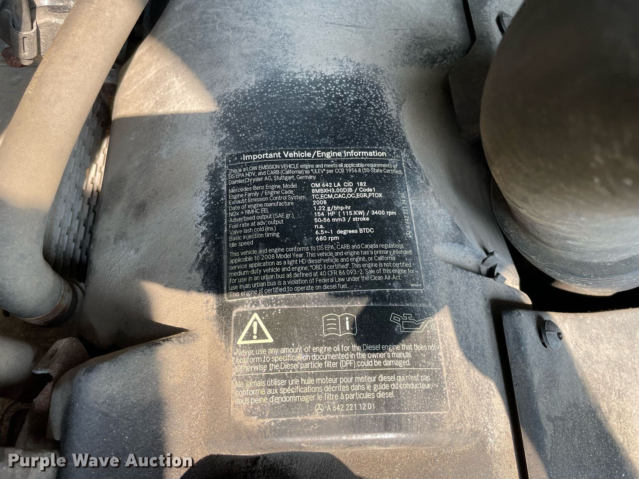 2008 Freightliner Sprinter 2500 van. Miles: 274,840 on odometer, VIN: WDYPE745185306433. Engine Displacement: 3.0L V6 DOHC, Cylinders: 6, Fuel type: Diesel. Transmission Automatic. Interior AC, Heat, Power windows, Power locks, Cruise control. Tires Size: 245/75R16. Notes Engine issues Unit must be towed or hauled, Dash warning indicator: Check engine. Pennsylvania title. Title distribution may be delayed up to 14 days from verification of funds. 1820 Bennetts Run Road. Beaver Falls, PA 15010
