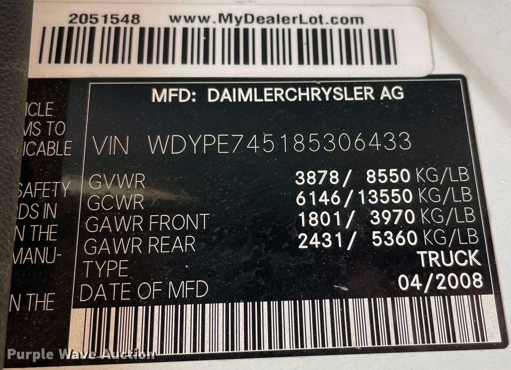 - VIN: WDYPE745185306433