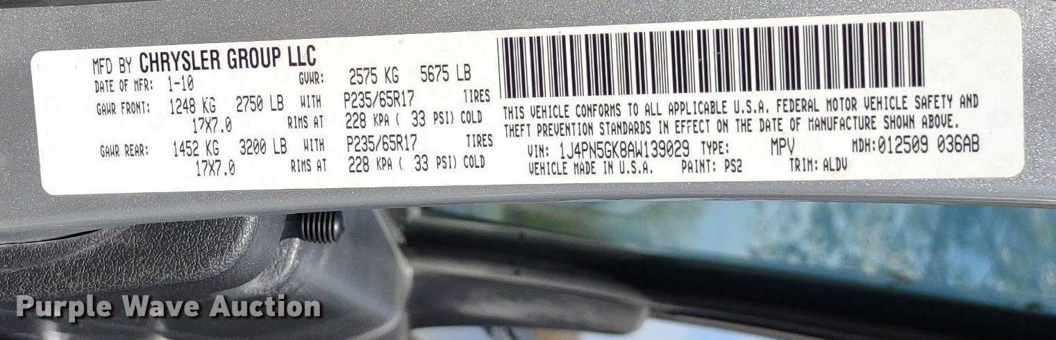 - VIN: 1J4PN5GK8AW139029