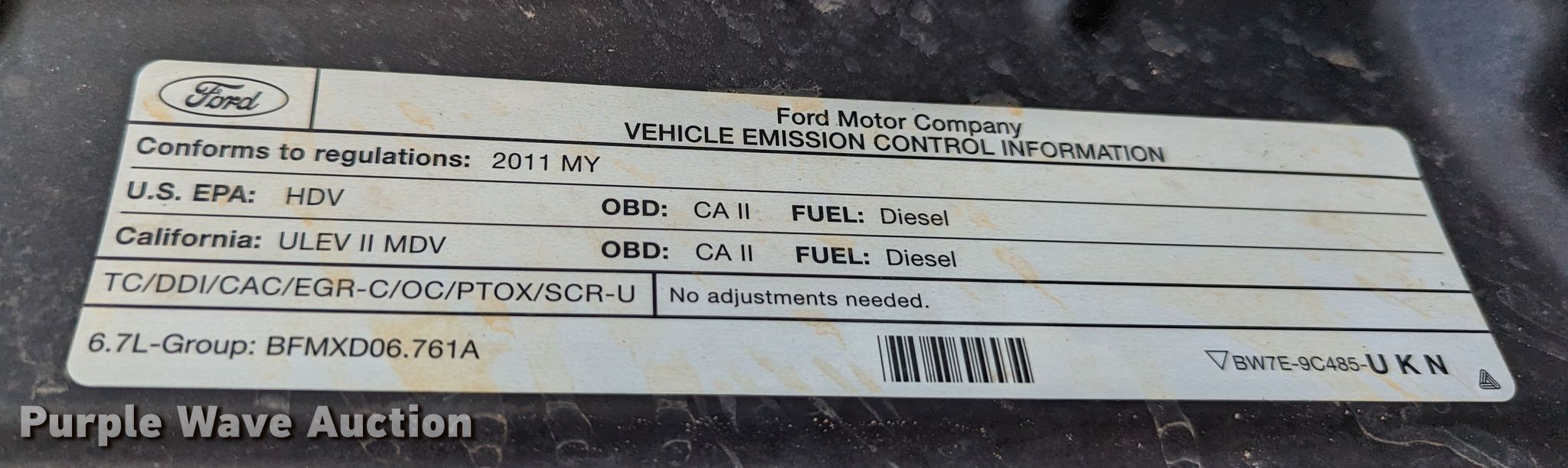 2011 Ford F250 Super Duty Crew Cab pickup truck. Miles: 247,702 on odometer, VIN: 1FT7W2ATXBEA16620. Engine Displacement: 6.7L V8 OHV, Cylinders: 8, Fuel type: Diesel. Transmission Automatic. Interior AC, Heat, Seat: Heated, Cooled, Power driver, Power passenger, Heated mirrors, Power windows, Power locks, Cruise control, Backup camera. Tires Size: LT275/65R20. Notes Dash warning indicator: Check engine, TPMS, Engine issues, misfire cylinder five. Arkansas title. 7600 Bryant Avenue. Oklahoma City, OK 73121