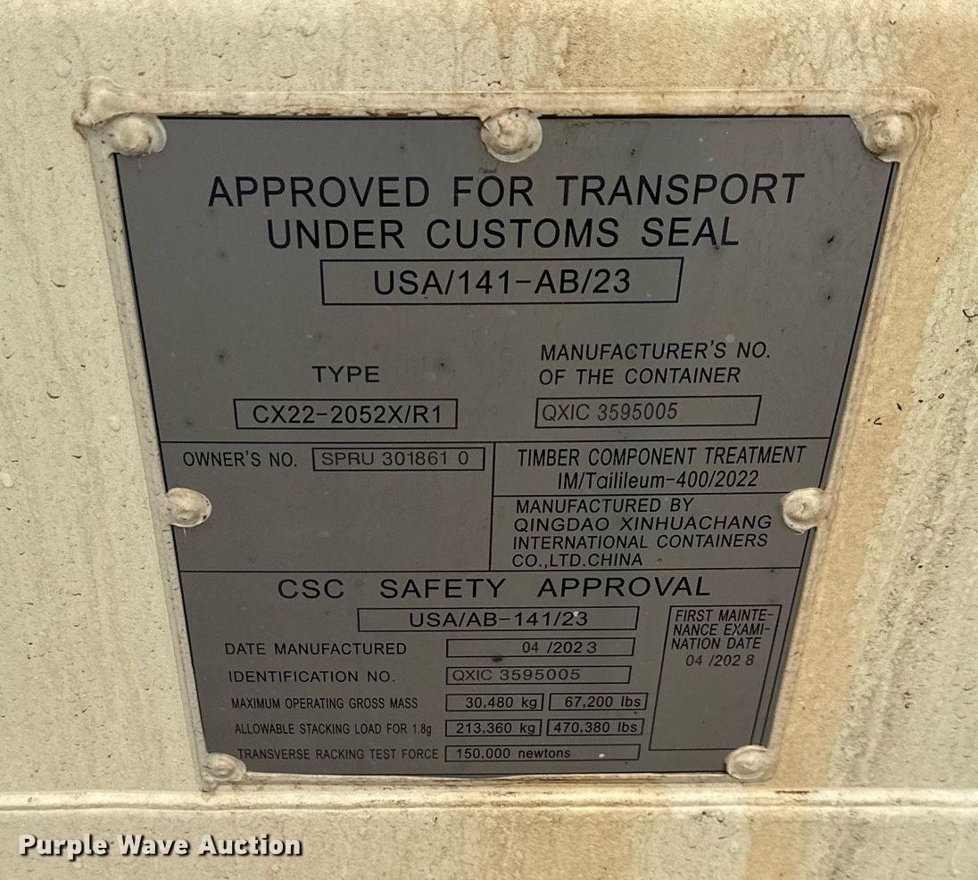 Purple Wave is selling a used Storage or Shipping Container in Kansas. This item is a 20' L shipping container with the following: Serial: QXIC3595005