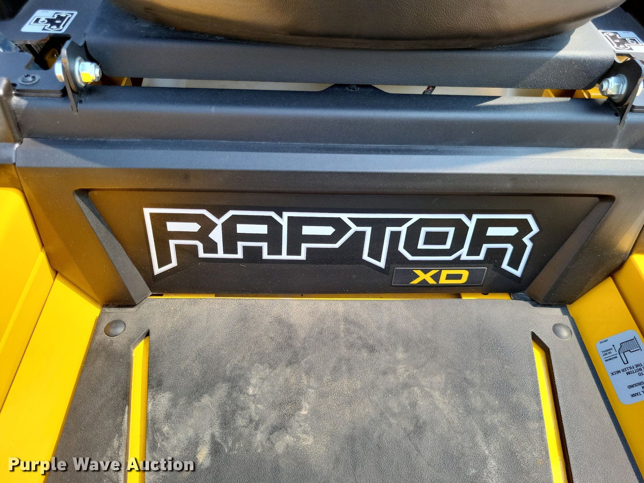 Purple Wave is selling a used Lawn Mower in Missouri. This item is a 2022 Hustler Raptor XD ZTR lawn mower with the following: Hours: 34 on meter, Cutting width: 54", Serial: 20125756