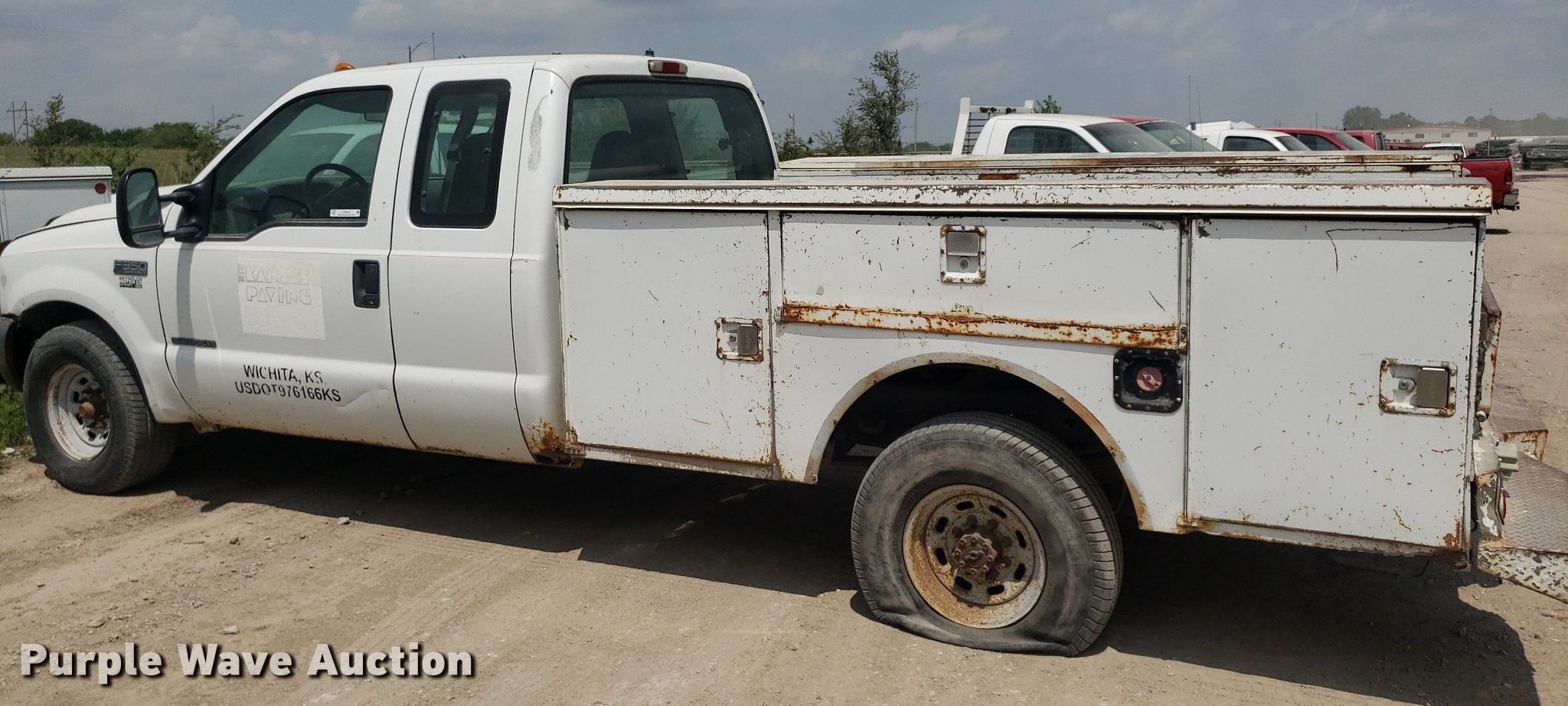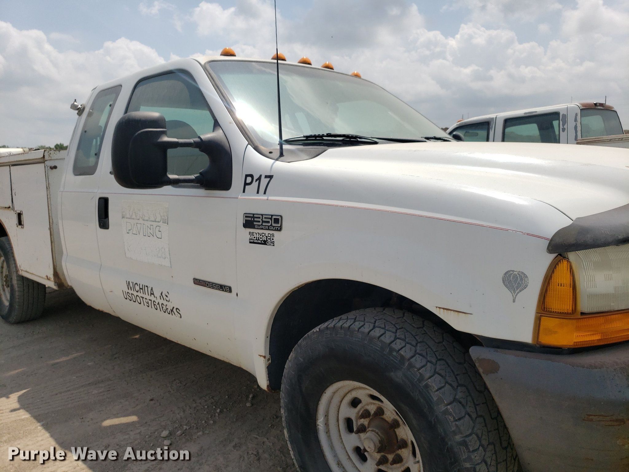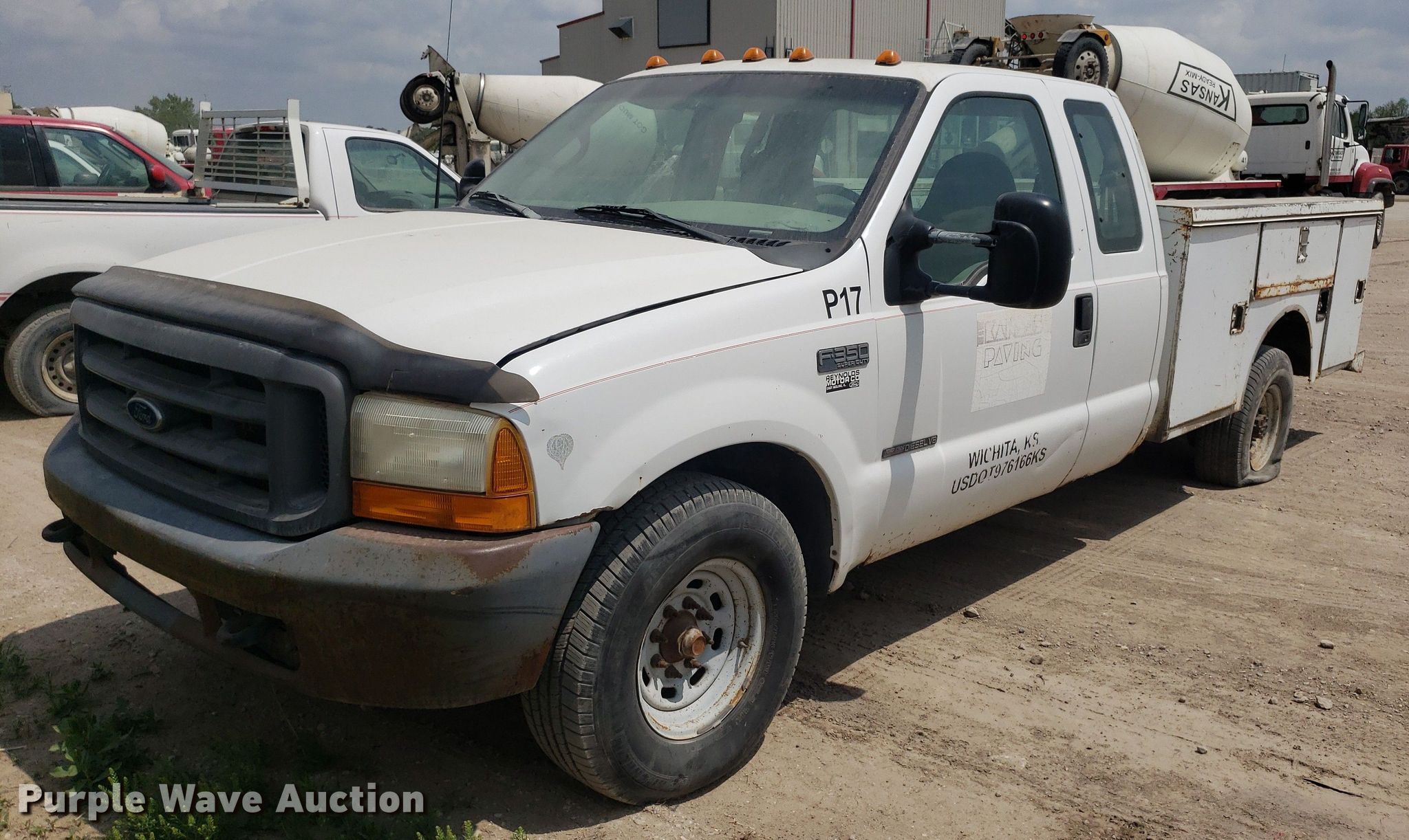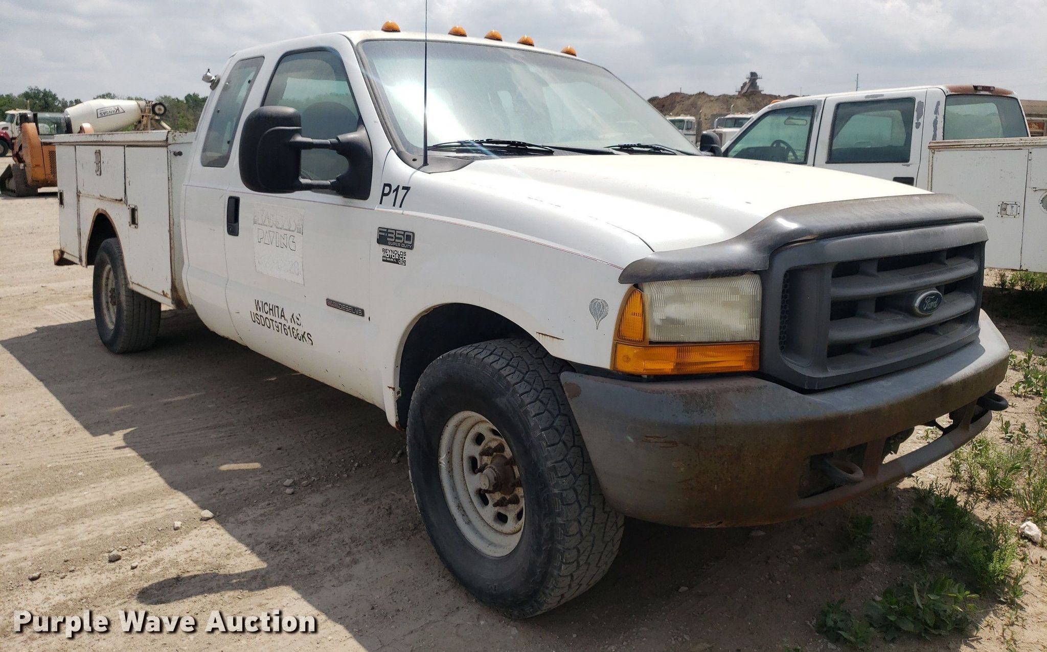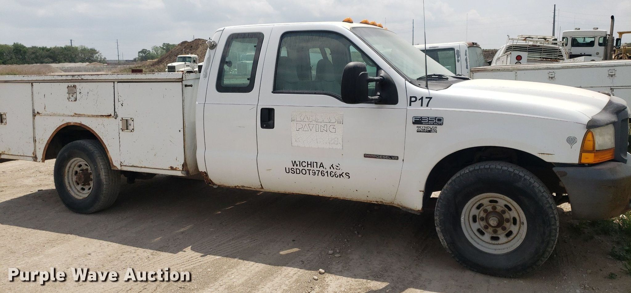 Purple Wave is selling a used 3/4 or 1 Ton Pickup or Van in Kansas. This item is a 1999 Ford F350 Super Duty SuperCab utility bed pickup truck with the following: Miles: 301,584 on odometer, VIN: 1FDSX34F6XEE74841