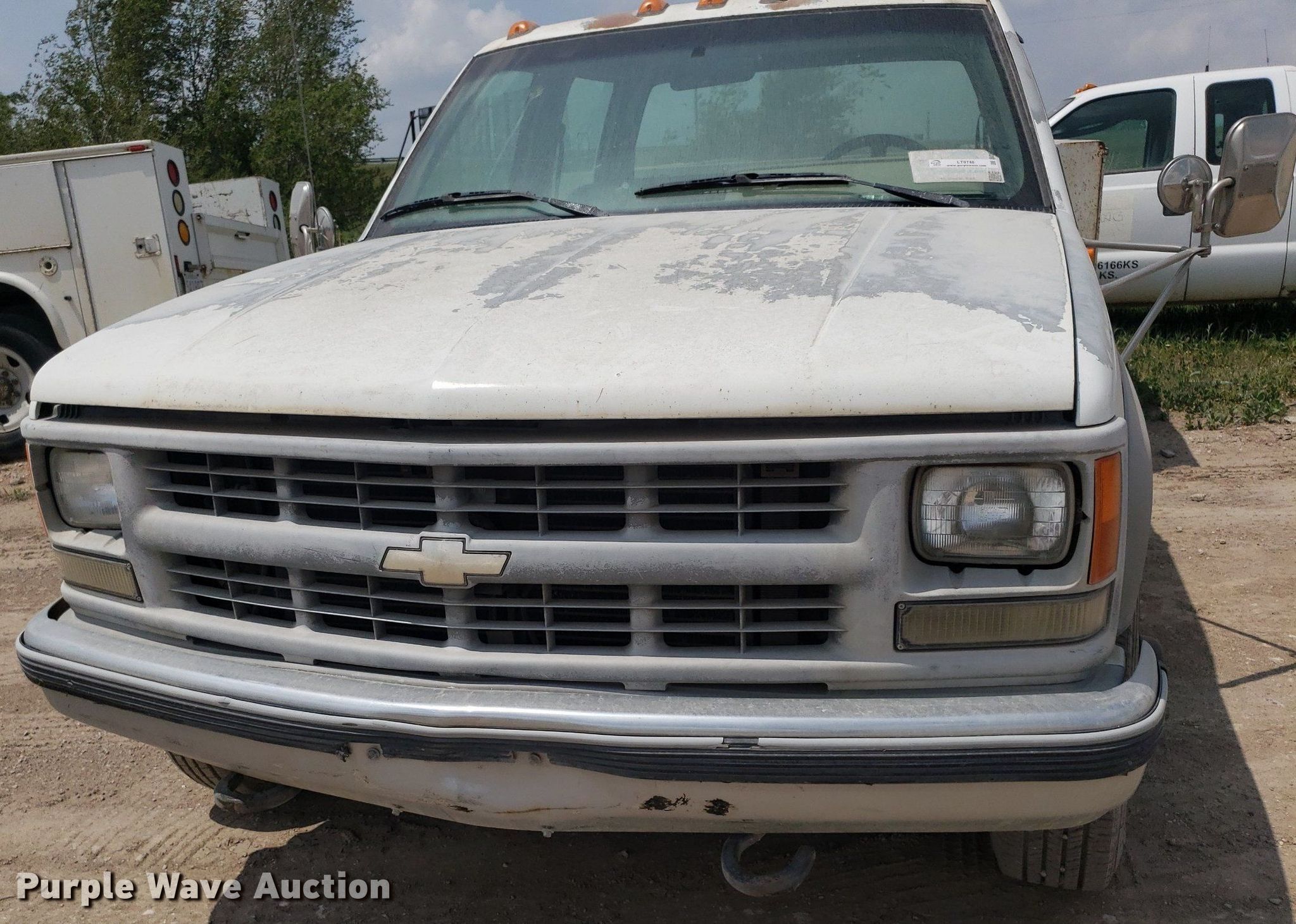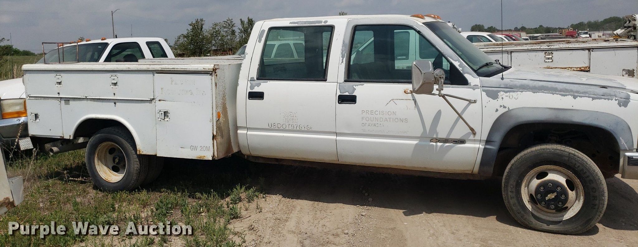 Purple Wave is selling a used 3/4 or 1 Ton Pickup or Van in Kansas. This item is a 1994 Chevrolet K3500 Crew Cab utility bed pickup truck with the following: Miles: 242,320 on odometer, VIN: 1GBHK33K0RJ396437