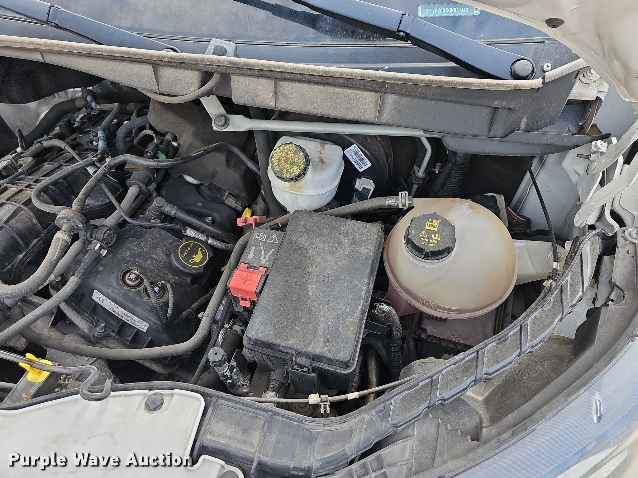 2016 Ford Transit van. Miles: 147,308 on odometer, VIN: 1FTYR2CGXGKB31142, Unit #: 94701. Engine Displacement: 3.5L V6 DOHC, Cylinders: 6, Fuel type: Gas. Transmission Automatic. Interior AC, Heat, Cruise control, Backup camera. Tires Size: 235/65R16. Notes Dash warning indicator: Check engine, Windshield chipped or cracked, Hail damage. Missouri title. The Waldinger Corporation. 1219 East Division Street. Springfield, MO 65803