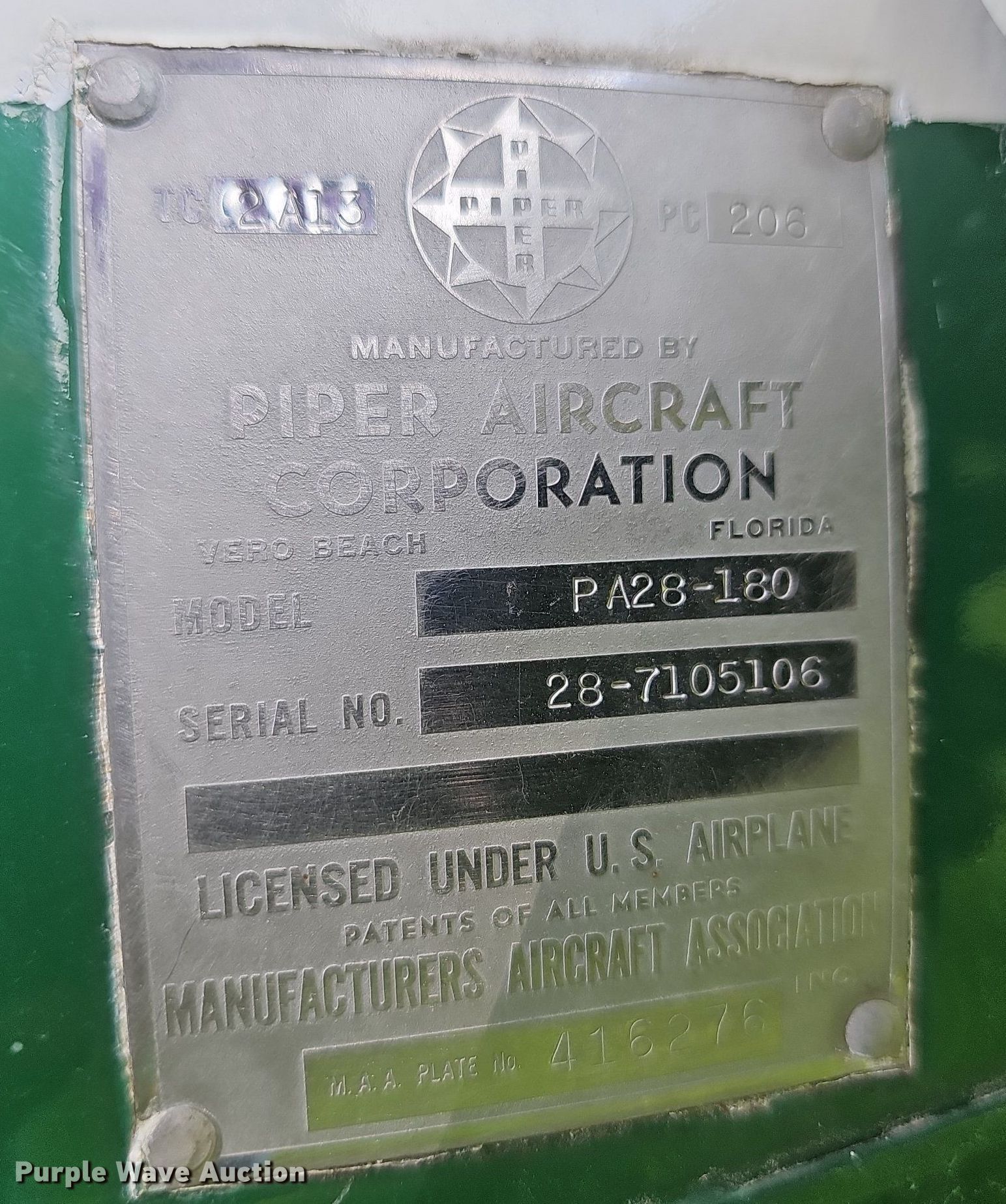1971 Piper Aircraft PA28-180 airplane | SOLD! June 21 Vehicles and Equipment Auction