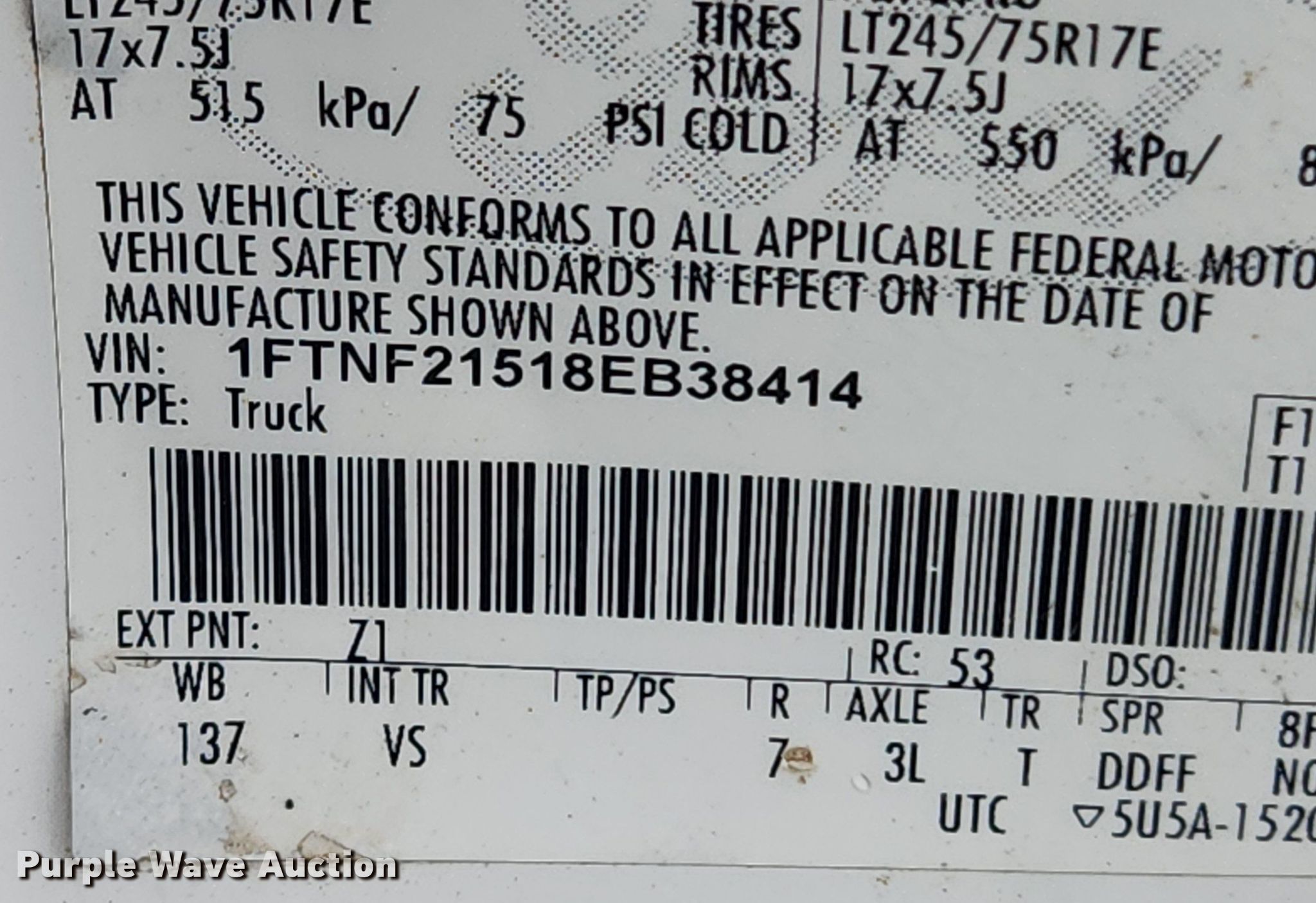Purple Wave is selling a used 3/4 or 1 Ton Pickup or Van in Missouri. This item is a 2008 Ford F250 Super Duty XL pickup truck with the following: Miles: 97,226 on odometer, VIN: 1FTNF21518EB38414