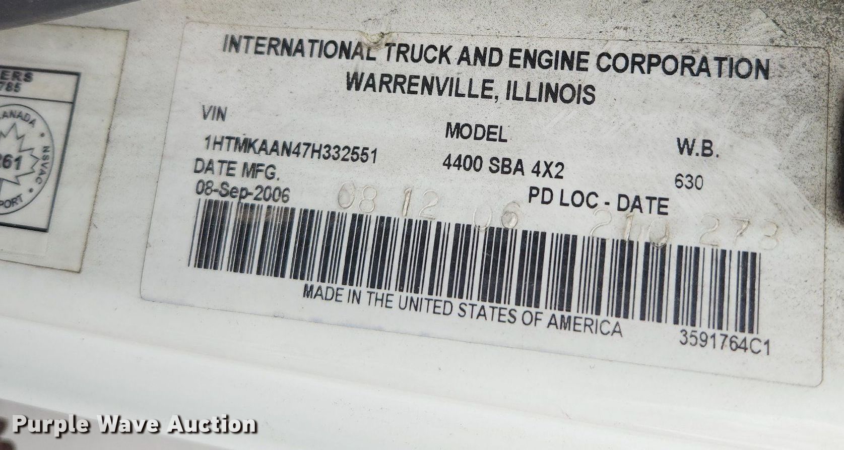 Purple Wave is selling a used Box Truck in Missouri. This item is a 2007 International 4400 box truck with the following: Miles: Unknown, VIN: 1HTMKAAN47H332551