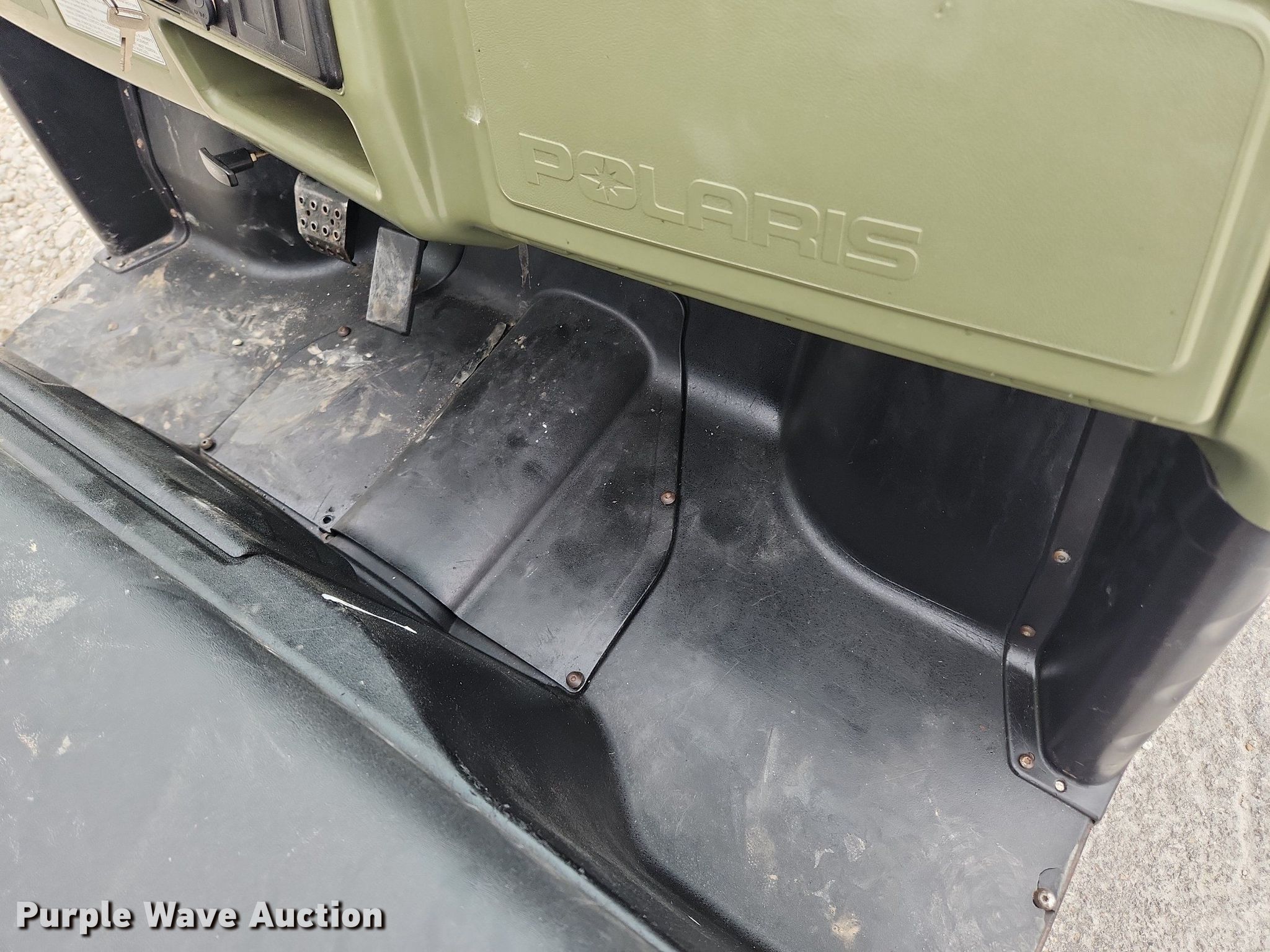 2007 Polaris 700 utility vehicle. Miles: 15,955 on odometer, Hours: 1,749 on meter, VIN: 4XARH68A274396295. Engine Polaris , Displacement: 683 cc, Cylinders: 2, Fuel type: Gas, Electric start. Transmission CVT. Chassis Four wheel drive. Operators station Passengers: 2. Features Grill guard, Dump bed 36" L x 54" W, Dump bed type: Manual. Tires Front: 25x8.00R12, Rear: 25x10.00R12. Notes Dead battery, Engine issues. Transfer of ownership documentation will be a bill of sale which will be assigned and distributed by the seller. Fruendly Auto Source Inc.. 110 Raceway Park Dr. Moscow Mills, MO 63362