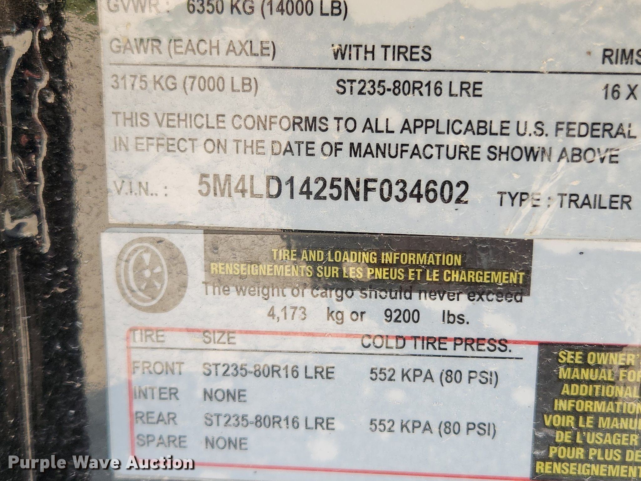 - VIN: 5M4LD1425NF034602