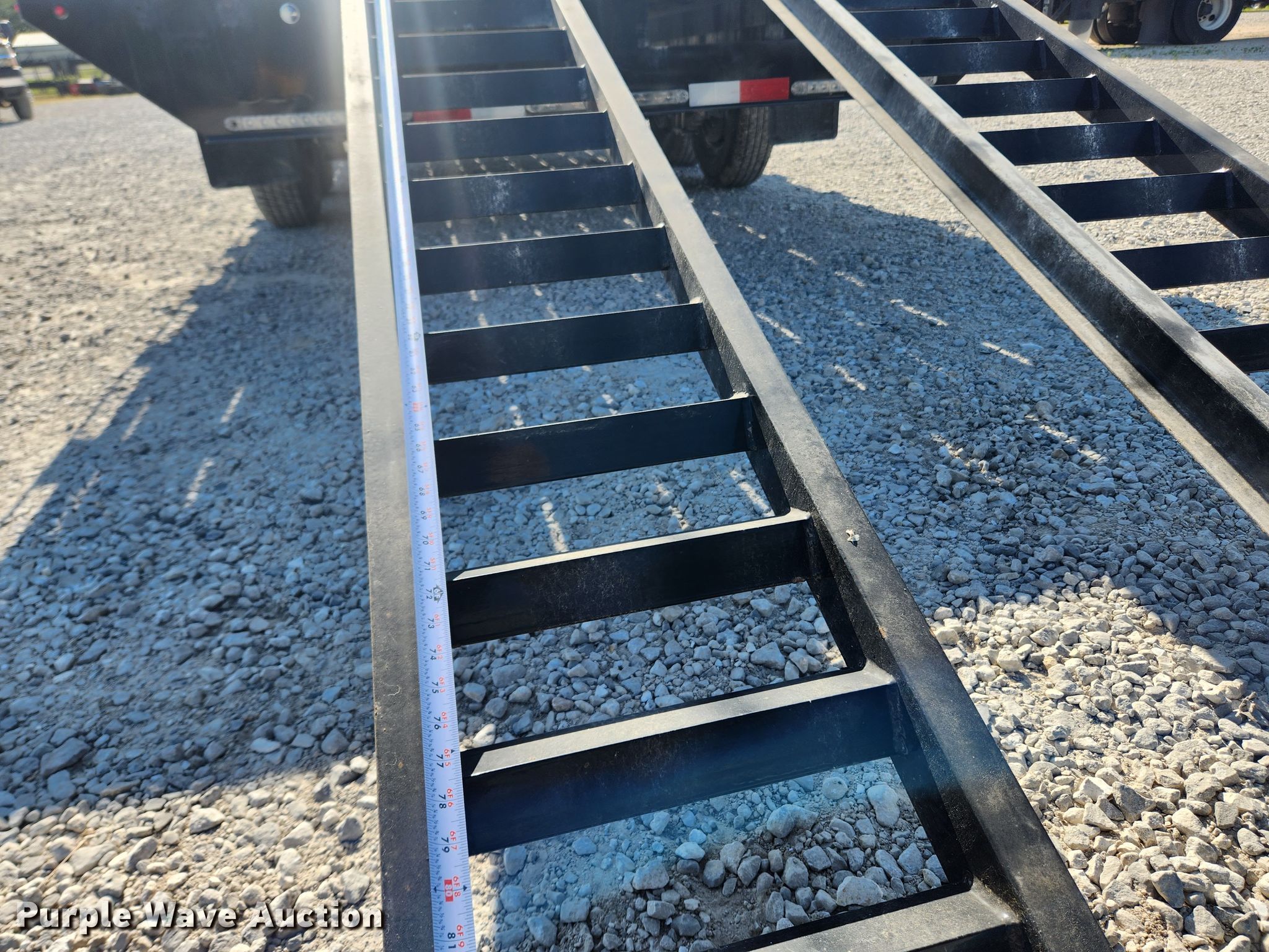 2020 H&H H10220HDL-140 equipment trailer. VIN: 5JWFF2023LN538201. Dimensions Overall: 24' L x 101" W, Deck: 20' L x 97" W, Ramps: Manual Length: 8'. Features Deck type: Wood. Chassis Hitch: Pintle, Landing gear: Dual, Suspension: Spring, Brakes: Electric, Axles: Tandem, GVWR: 14,000 lbs, GAWR: 7,000 lbs. Tires Steel wheels, Size: 235/80R16. Indiana title. Seller is a Missouri licensed motor vehicle dealer. Title will be assigned and distributed by the dealer. Please contact the seller for distribution questions. Northpoint Enterprises, LLC. 100 Manda Ct. Troy, MO 63379