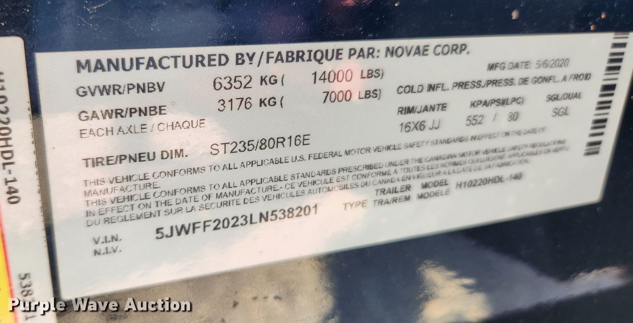 Purple Wave is selling a used Equip. Trailer in Missouri. This item is a 2020 H&H H10220HDL-140 equipment trailer with the following: VIN: 5JWFF2023LN538201