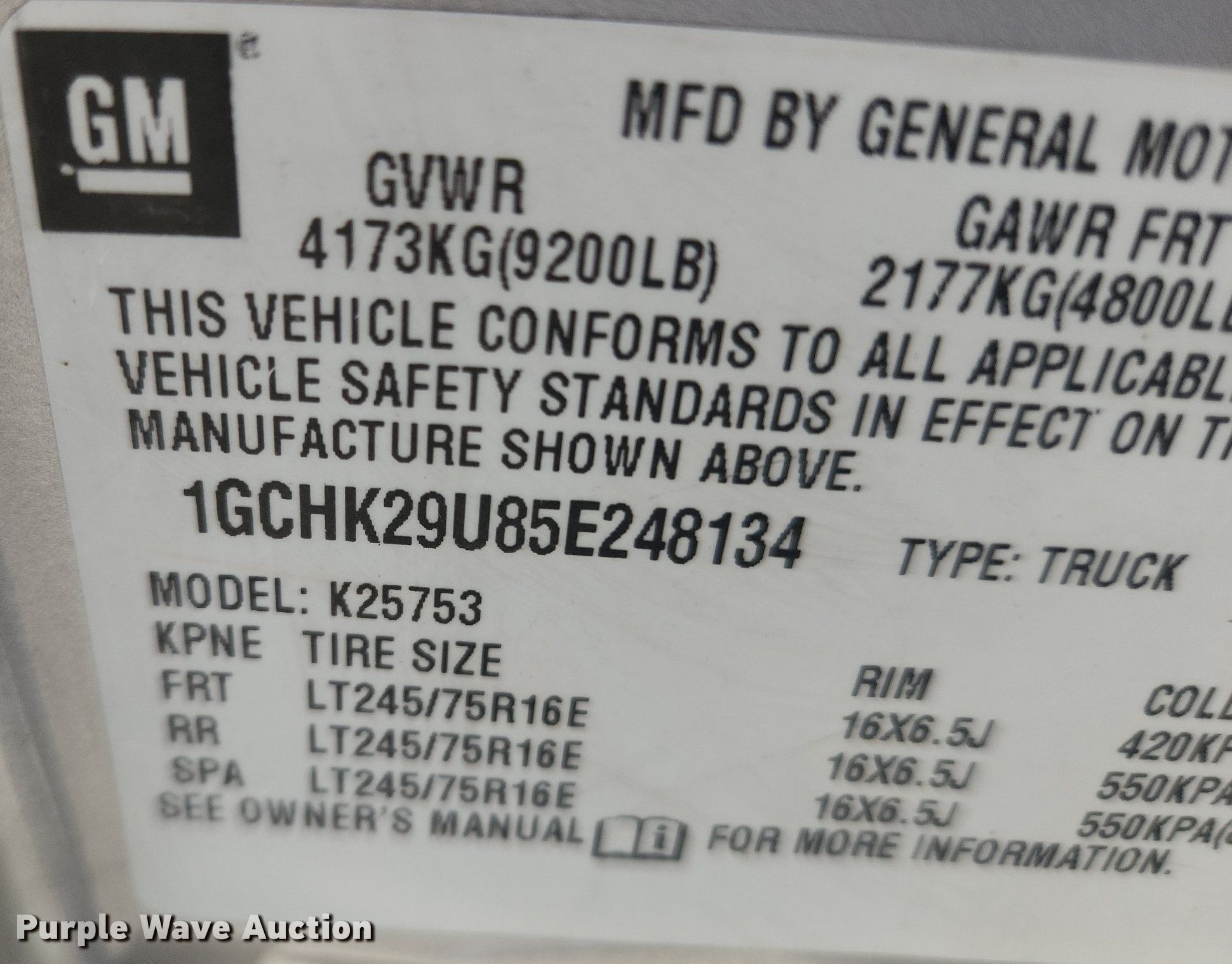 Purple Wave is selling a used 3/4 or 1 Ton Pickup or Van in Missouri. This item is a 2005 Chevrolet Silverado 2500HD Ext. Cab pickup truck with the following: Miles: 270,497 on odometer, VIN: 1GCHK29U85E248134
