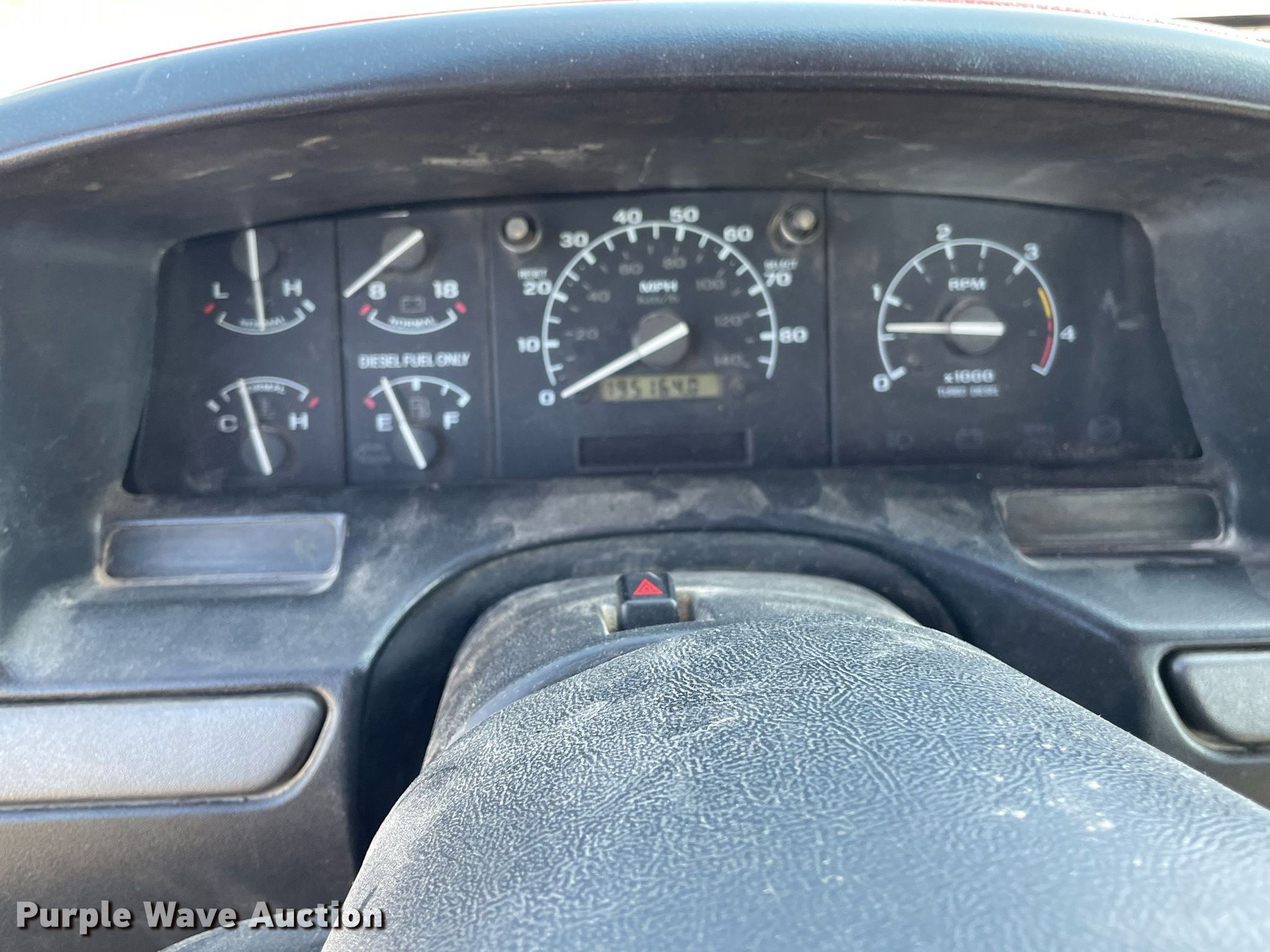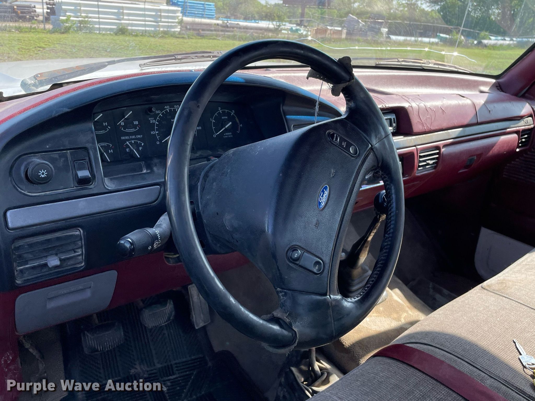 1995 Ford F350 XL flatbed pickup truck. Miles: 195,164 on odometer, VIN: 1FDKF38F9SEA75380. Engine Displacement: 7.3L V8 OHV, Cylinders: 8, Fuel type: Diesel. Transmission Manual, Speed: 5, Four wheel drive. Interior AC, Heat, Cruise control. Features Flatbed 9' L x 93" W, Hitch: Gooseneck. Tires Size: 235/85R16. Notes Windshield chipped or cracked, Non-operational speedometer. Kansas title. Title distribution may be delayed up to 14 days from verification of funds. Wichita, KS 67217