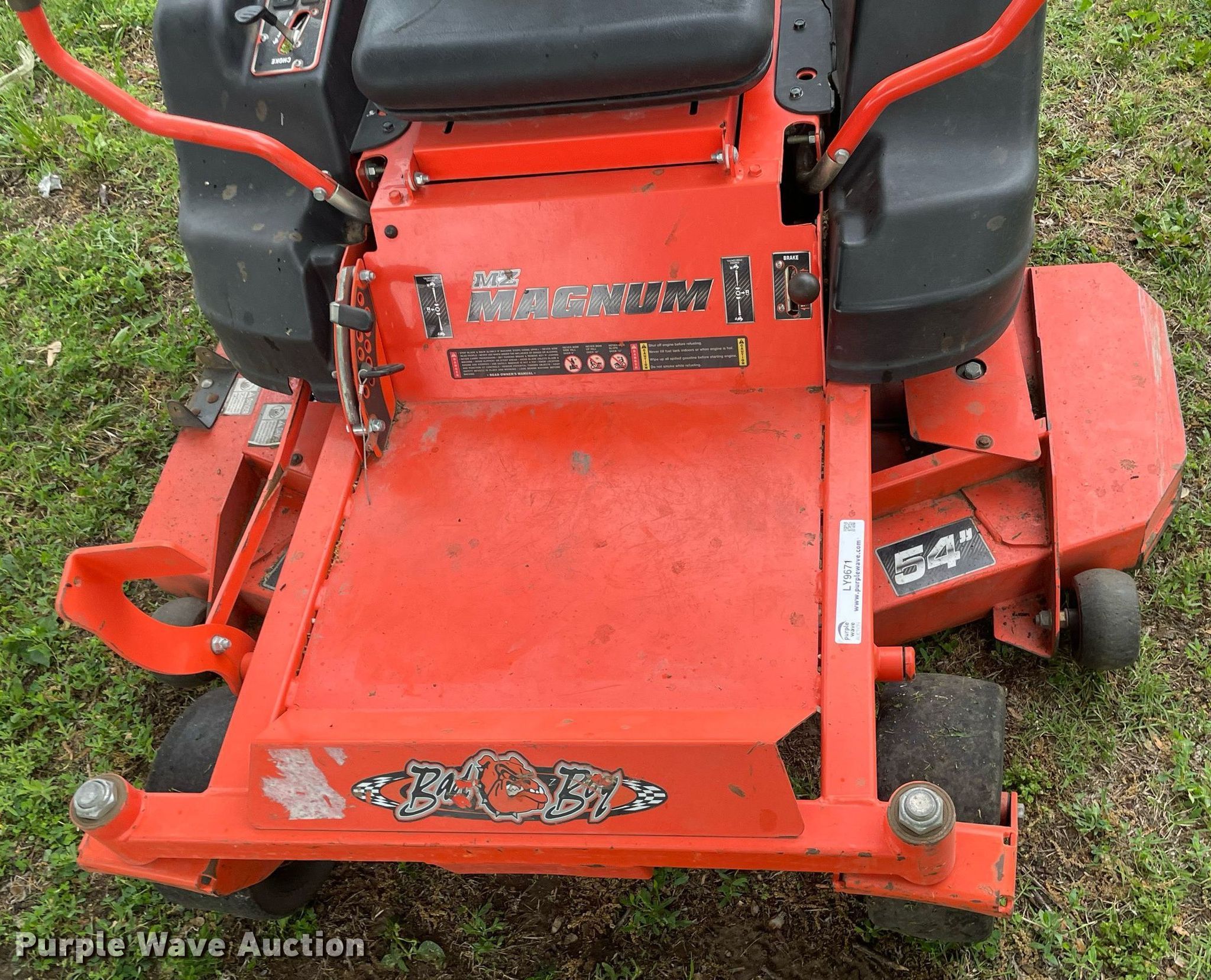 Purple Wave is selling a used Lawn Mower in Kansas. This item is a Bad Boy MZ Magnum ZTR lawn mower with the following: Hours: 279 on meter, Cutting width: 54"
