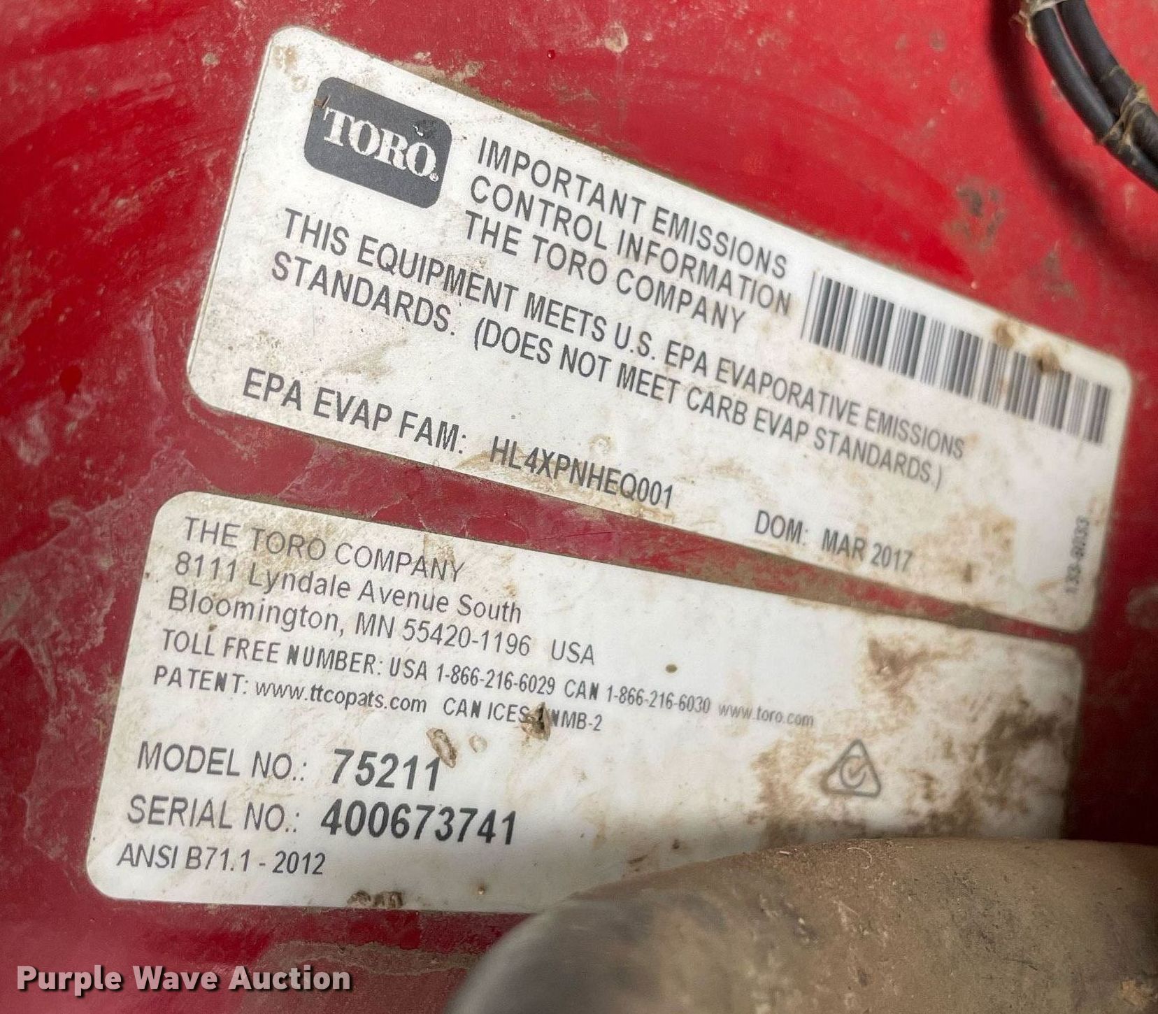 Purple Wave is selling a used Lawn Mower in Kansas. This item is a Toro 75211 ZTR lawn mower with the following: Hours: 597 on meter, Cutting width: 48", Serial: 400673741