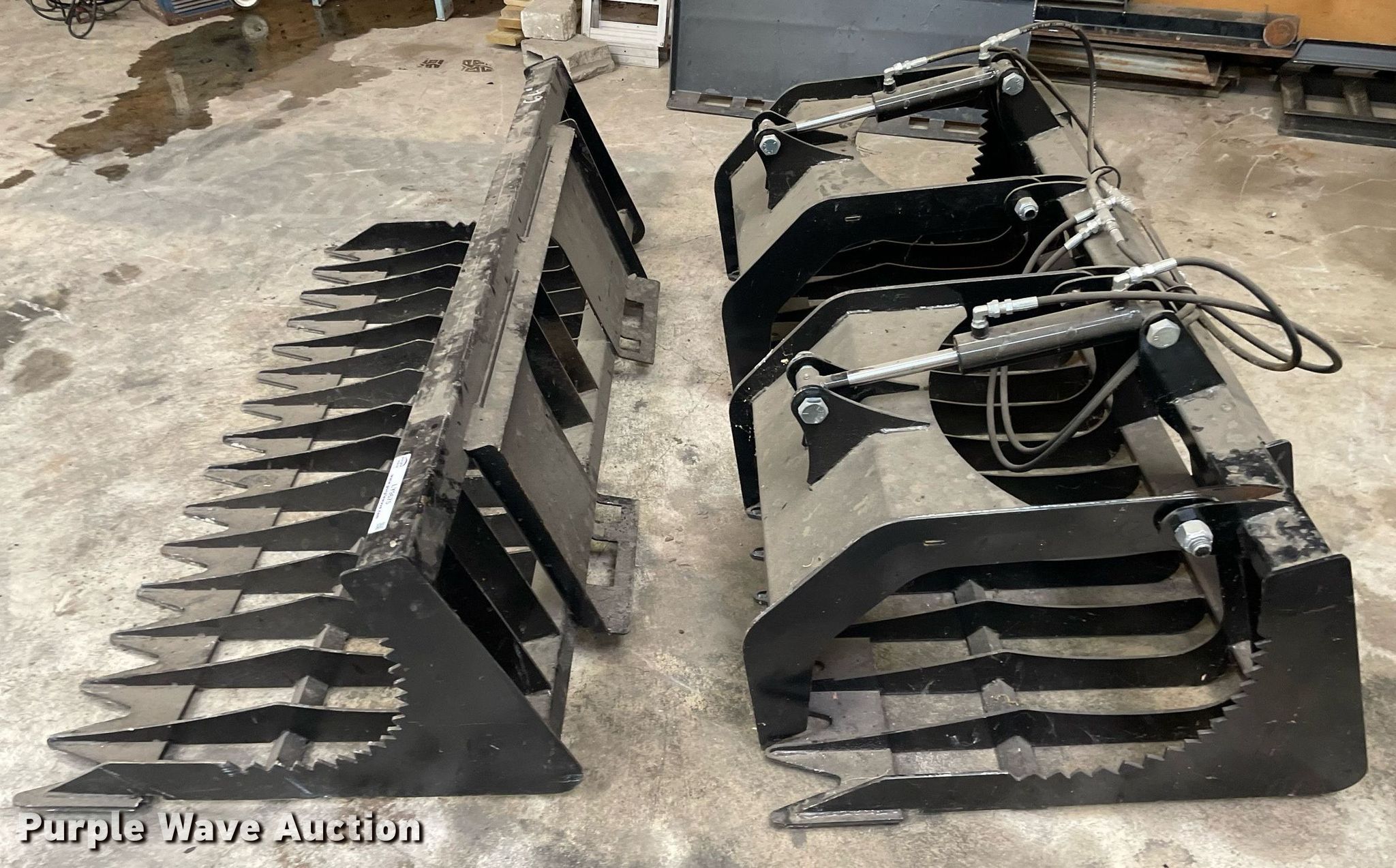 (2) skid steer buckets. 66" W rock bucket, 66" W grapple bucket, Unused. Salina, KS 67401