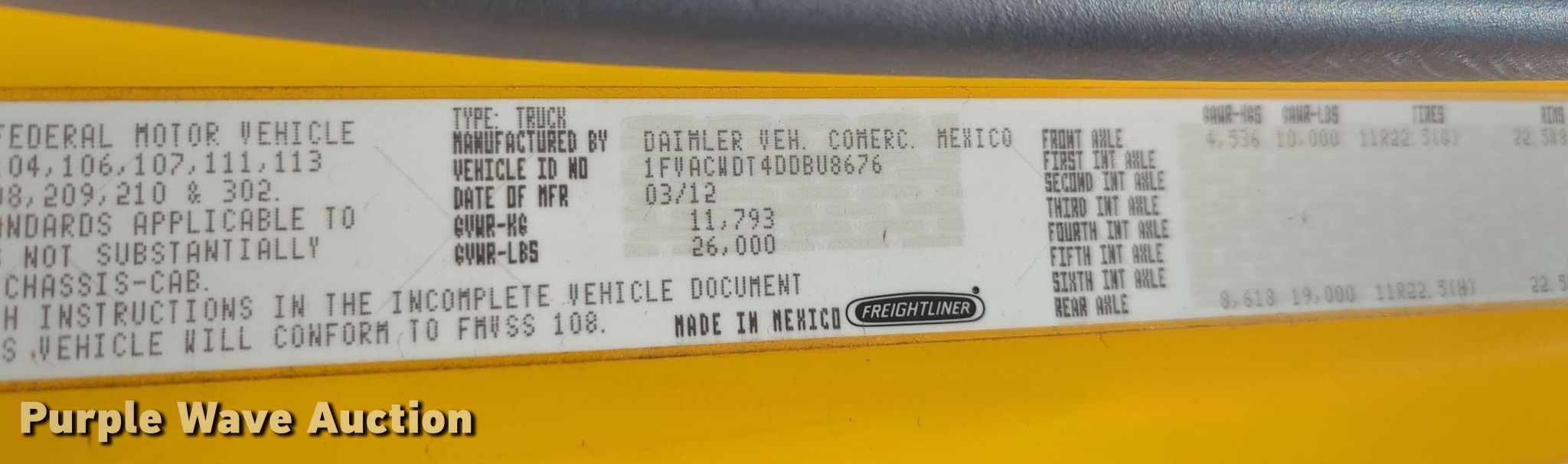 - VIN: 1FVACWDT4DDBU8676