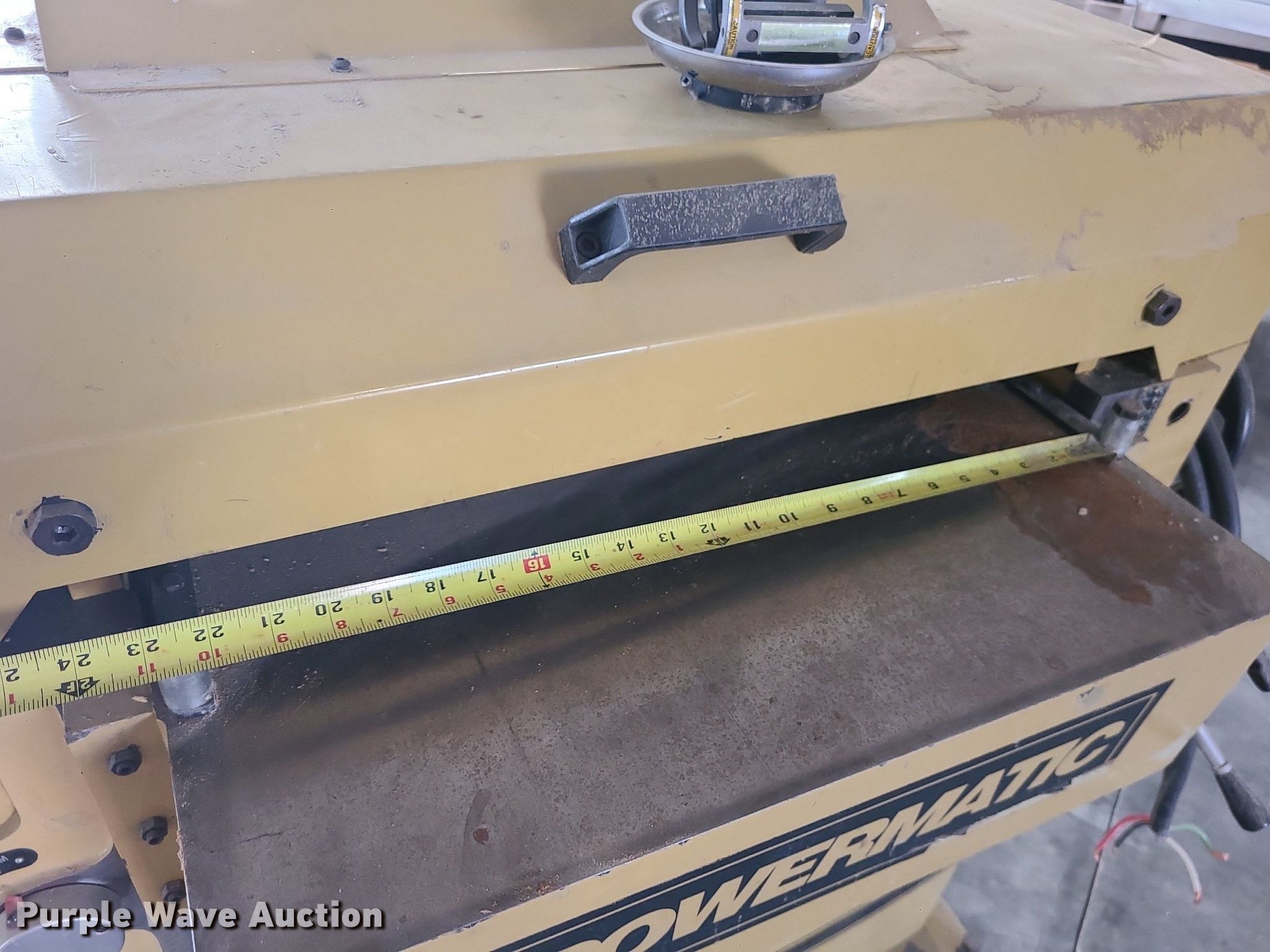 Purple Wave is selling a used Tools in Missouri. This item is a Powermatic 201 planer with the following: 22" working width, Three phase electric motor, Serial: 02072010173