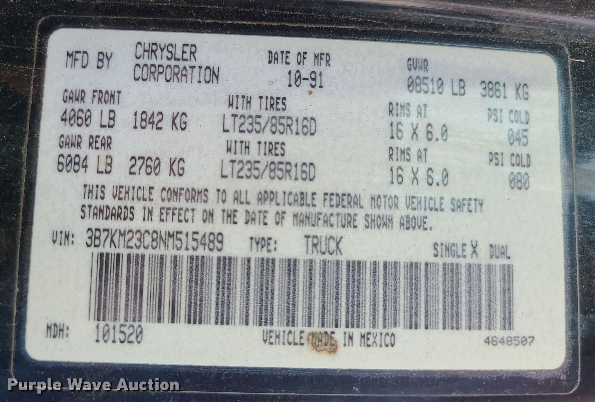 Purple Wave is selling a used 3/4 or 1 Ton Pickup or Van in Missouri. This item is a 1992 Dodge Ram 250 Club Cab pickup truck with the following: Miles: 191,985 on odometer, VIN: 3B7KM23C8NM515489