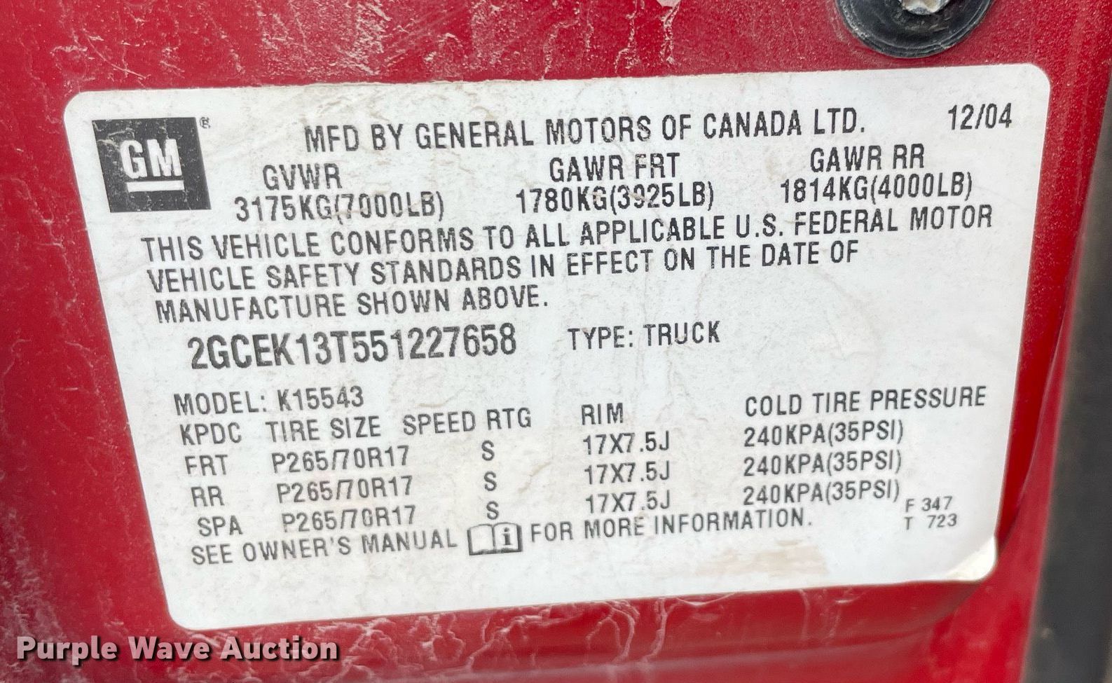 - VIN: 2GCEK13T551227658