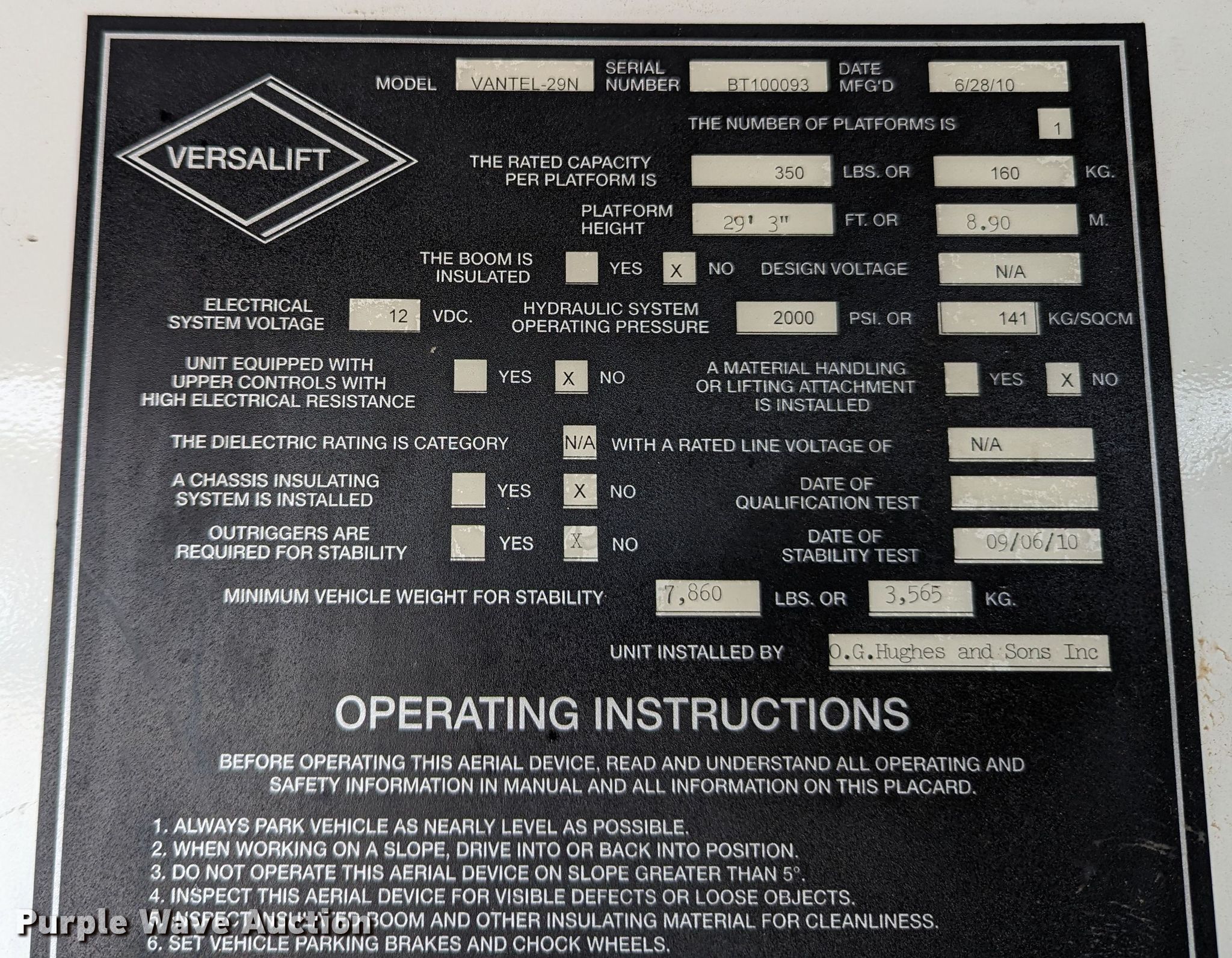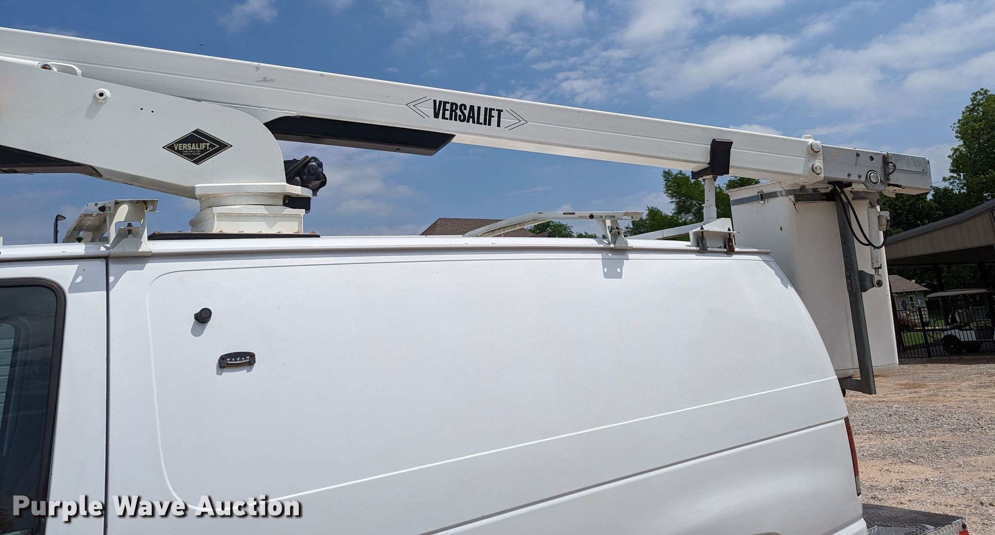 2010 Ford E350 Super Duty van with bucket lift. Miles: 165,657 on odometer, VIN: 1FTSE3EL7ADA73407. Engine Displacement: 5.4L V8 SOHC, Cylinders: 8, Fuel type: Gas. Transmission Automatic. Chassis Axles: Single, Suspension: Spring, Brakes: Hydraulic. Interior AC, Heat, Power windows. Features Boom Versalift Vantel-29N, Serial: BT100093, Maximum lift capacity: 350 lbs, Maximum lift height: 29', Boom type: Articulating, Man basket, Boom controls Ground, Platform/ basket, Remote control. Tires Size: 245/75R16. Notes Dash warning indicator: TPMS. Georgia title. Title distribution may be delayed up to 30 days from verification of funds. L&R Auto Brokers, LLC. 14555 W Frisco Dr. Yukon, OK 73099