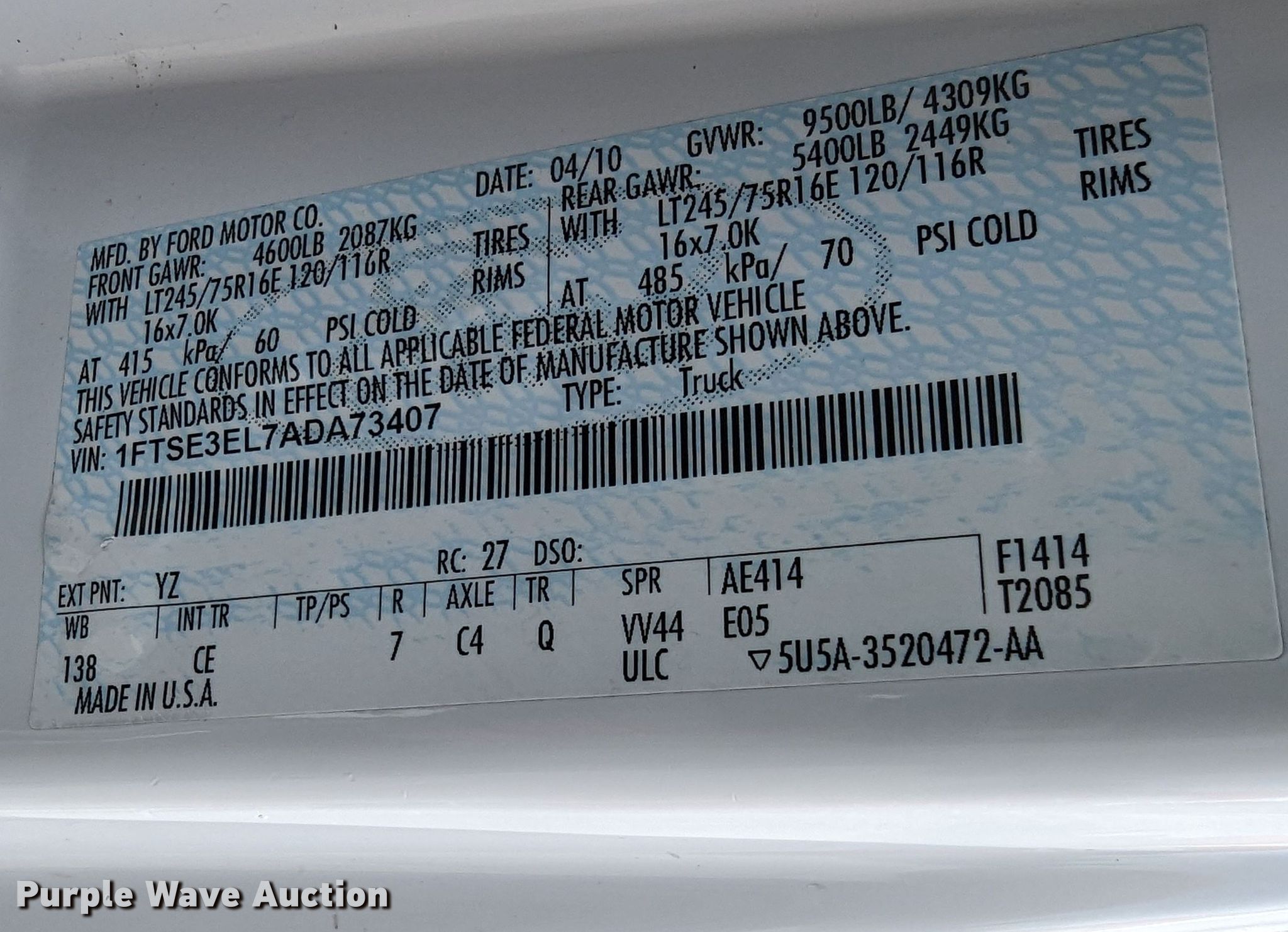Purple Wave is selling a used 3/4 or 1 Ton Pickup or Van in Oklahoma. This item is a 2010 Ford E350 Super Duty van with bucket lift with the following: Miles: 165,657 on odometer, VIN: 1FTSE3EL7ADA73407