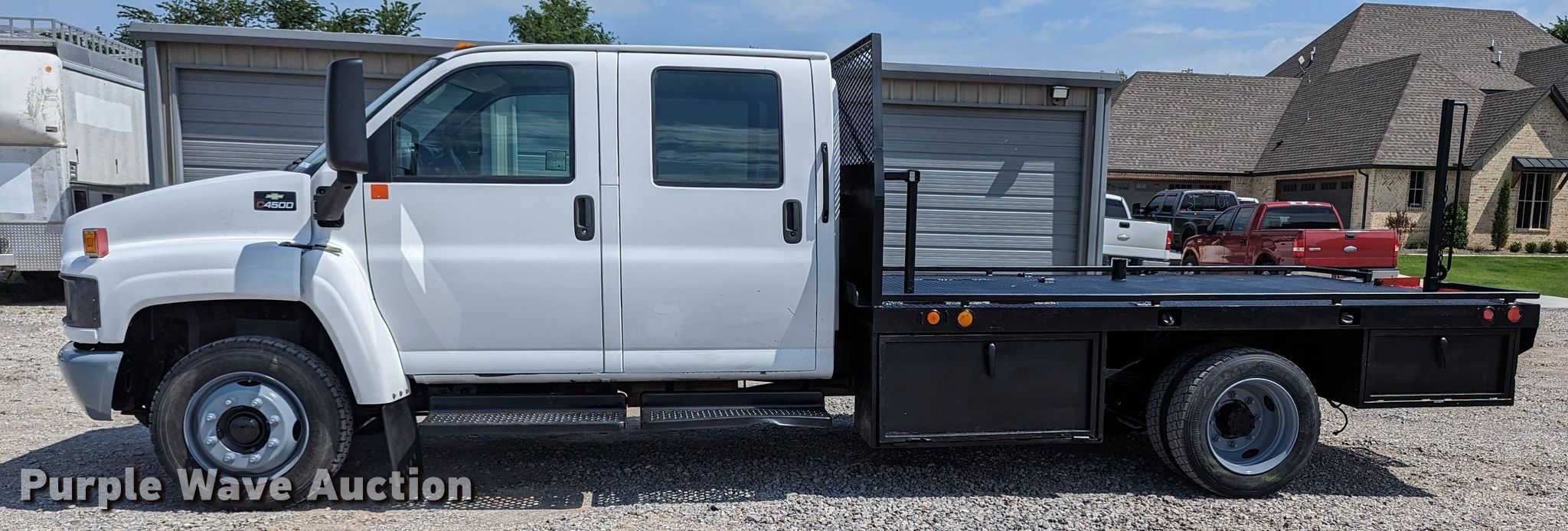 Purple Wave is selling a used Flat Bed Truck in Oklahoma. This item is a 2008 Chevrolet C4500 Crew Cab flatbed truck with the following: Miles: 38,322 on odometer, VIN: 1GBE4E1G18F417000