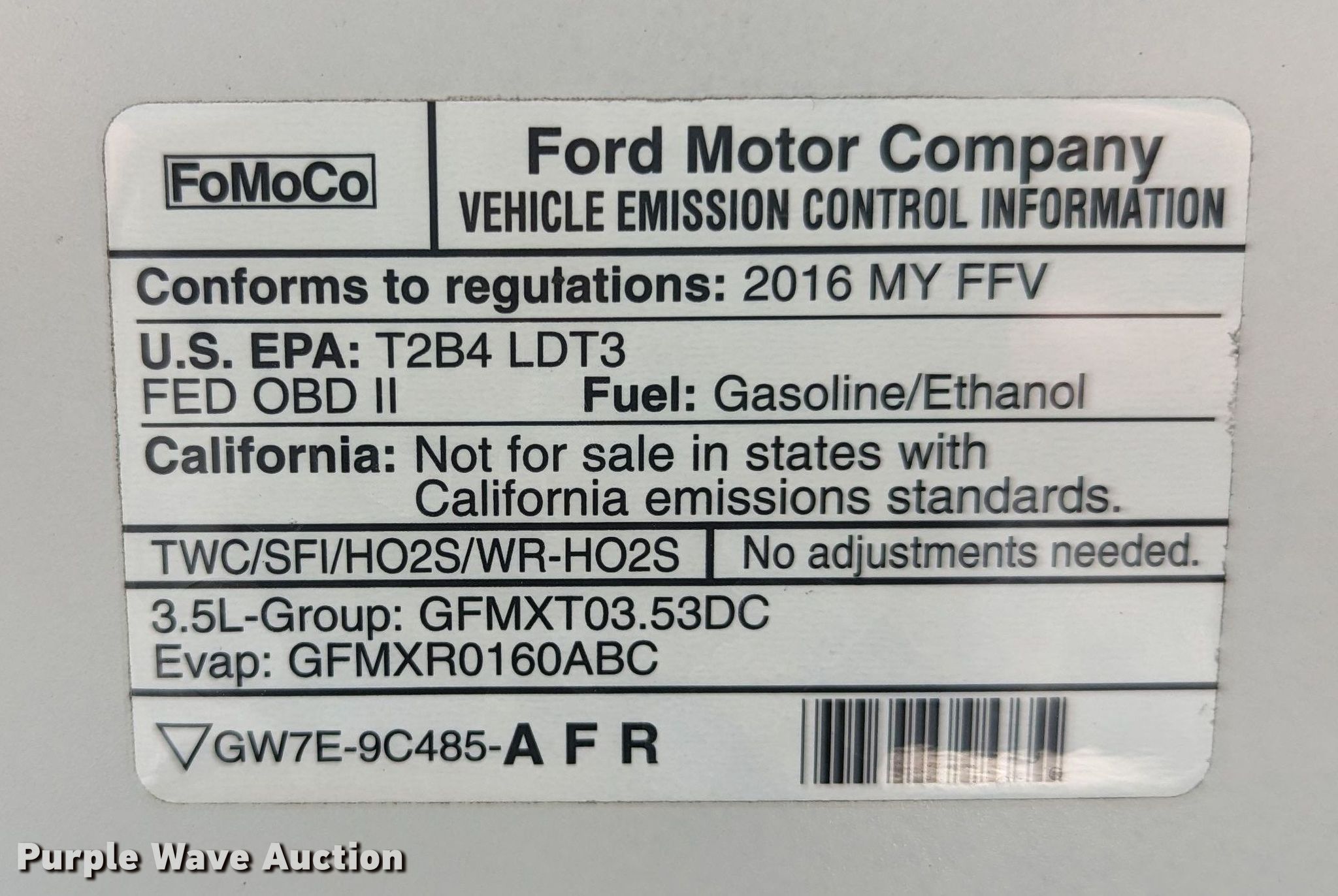 2016 Ford F150 pickup truck. Miles: 152,239 on odometer, VIN: 1FTMF1E89GKF56066. Engine Displacement: 3.5L V6 DOHC, Cylinders: 6, Fuel type: Dual fuel Gas, LPG. Transmission Automatic, Four wheel drive. Interior AC, Heat. Tires Size: 265/70R17. Notes Dash warning indicator: Check engine, TPMS. Florida title. Title distribution may be delayed up to 30 days from verification of funds. L&R Auto Brokers, LLC. 709 N Morgan Rd. Oklahoma City, OK 73127