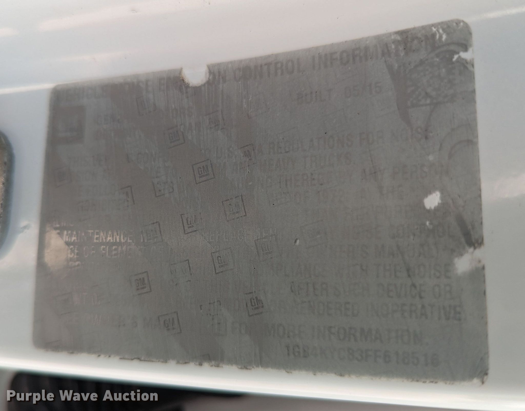 Purple Wave is selling a used 3/4 or 1 Ton Pickup or Van in Oklahoma. This item is a 2015 Chevrolet Silverado 3500HD Crew Cab utility bed pickup truck with the following: Miles: 158,928 on odometer, VIN: 1GB4KYC83FF618516