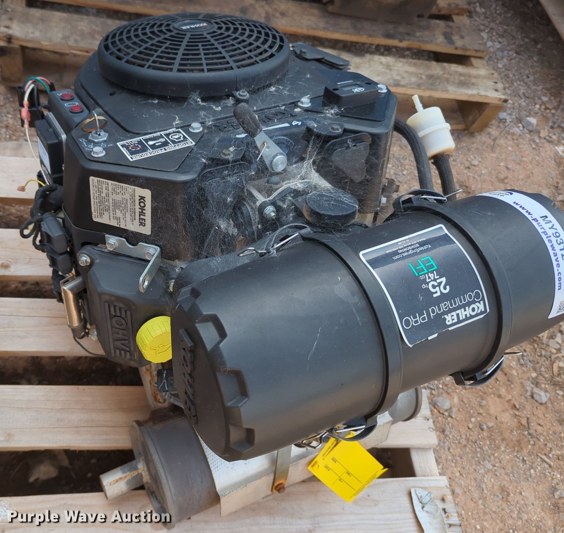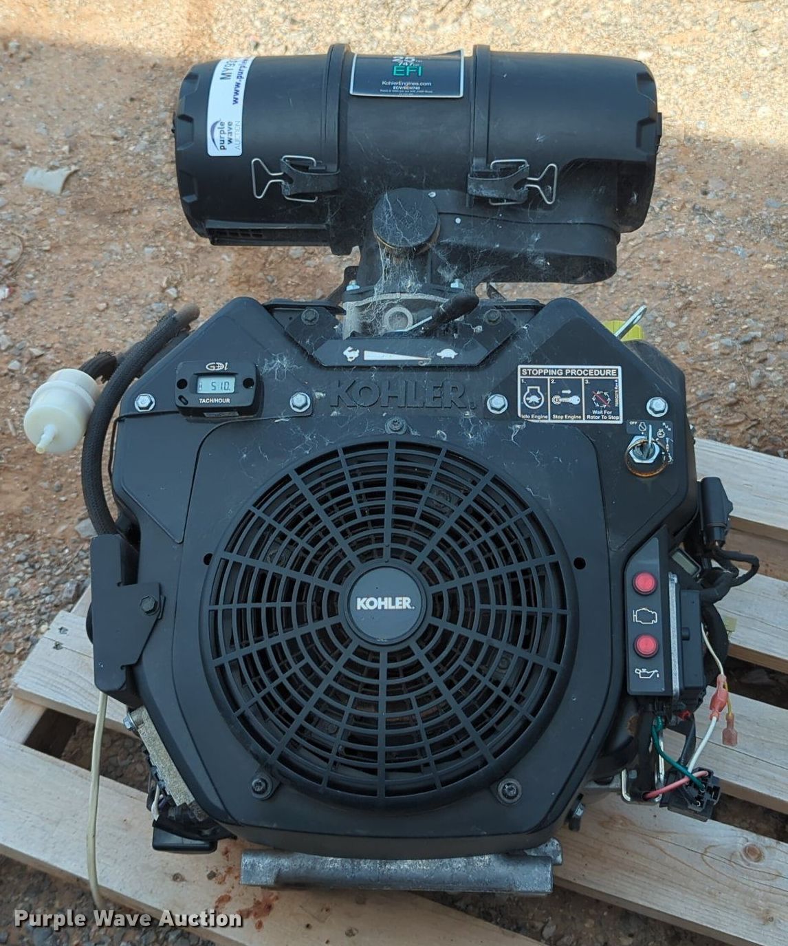 Purple Wave is selling a used Engine in Oklahoma. This item is a Kohler ECH740 engine with the following: Hours: 510 on meter, Serial: 4731301921, Displacement: 747 cc, Cylinders: 2, Fuel type: Gas, HP: 25