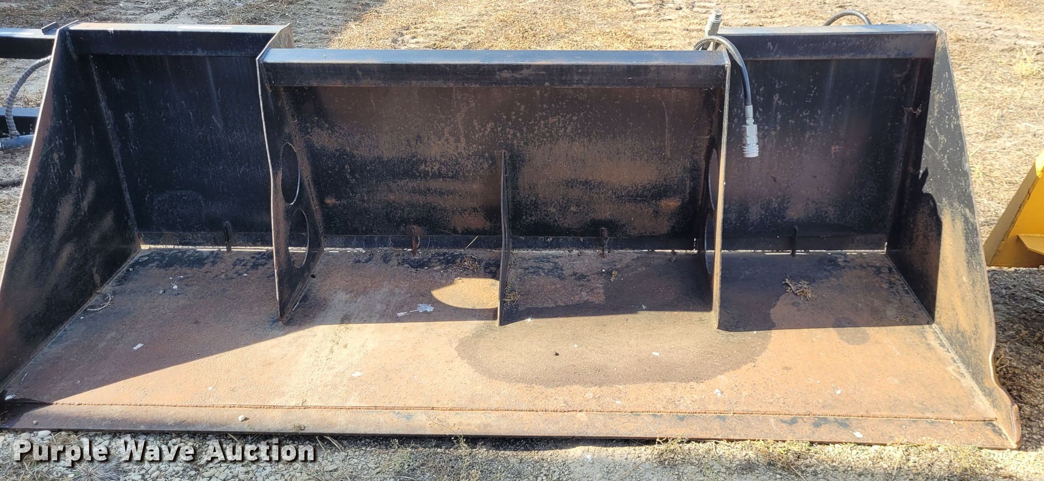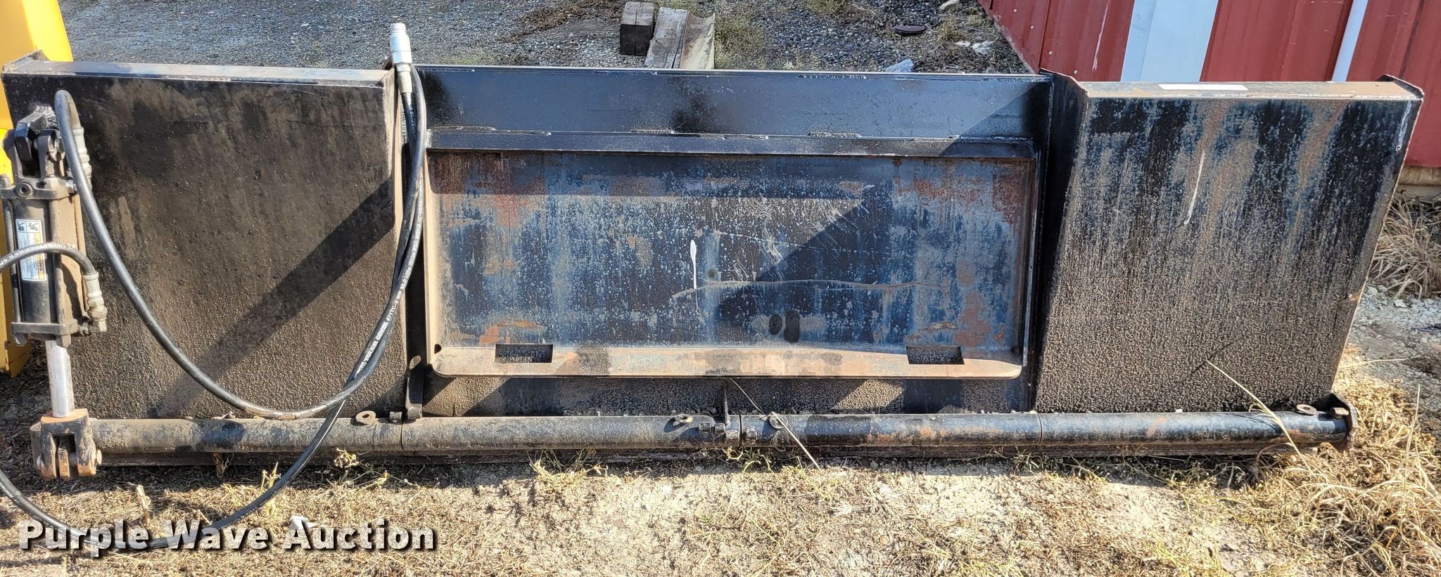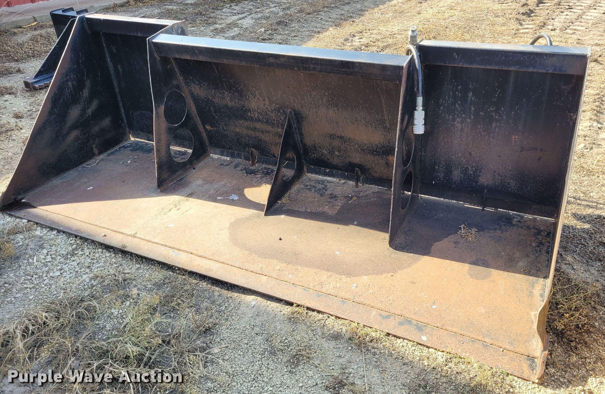 Purple Wave is selling a used Skid Steer Attach. in Kansas. This item is a 8'W skid steer rock spreading bucket with the following: Cutting edge: Weld-on