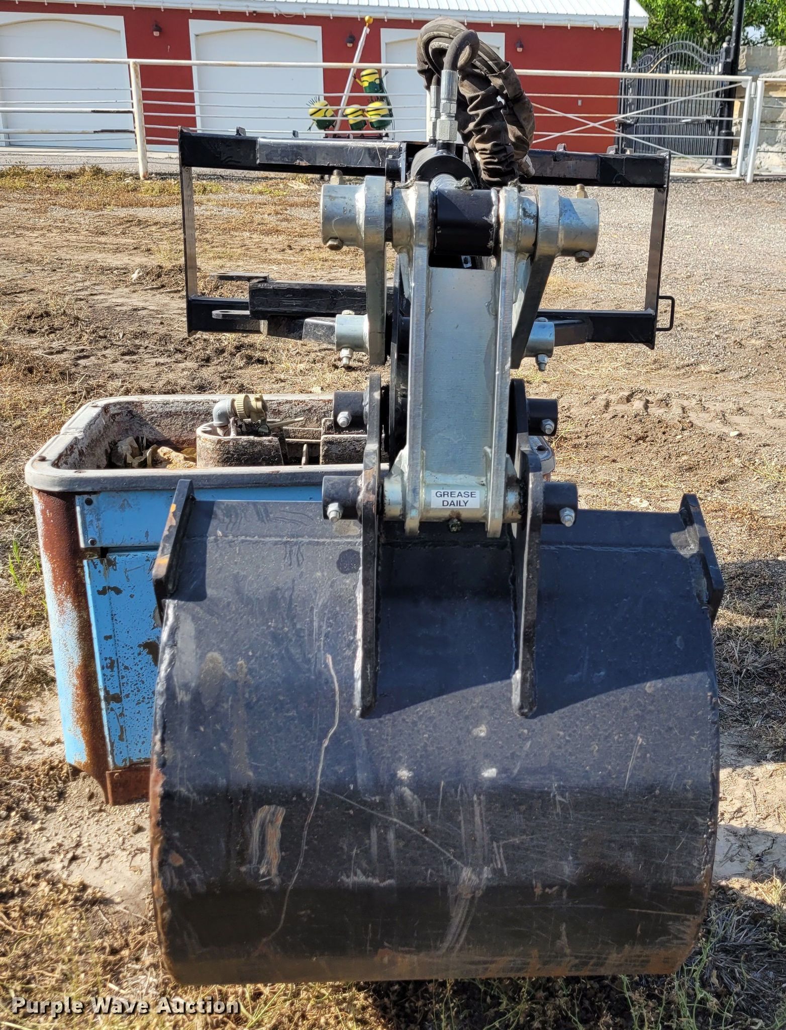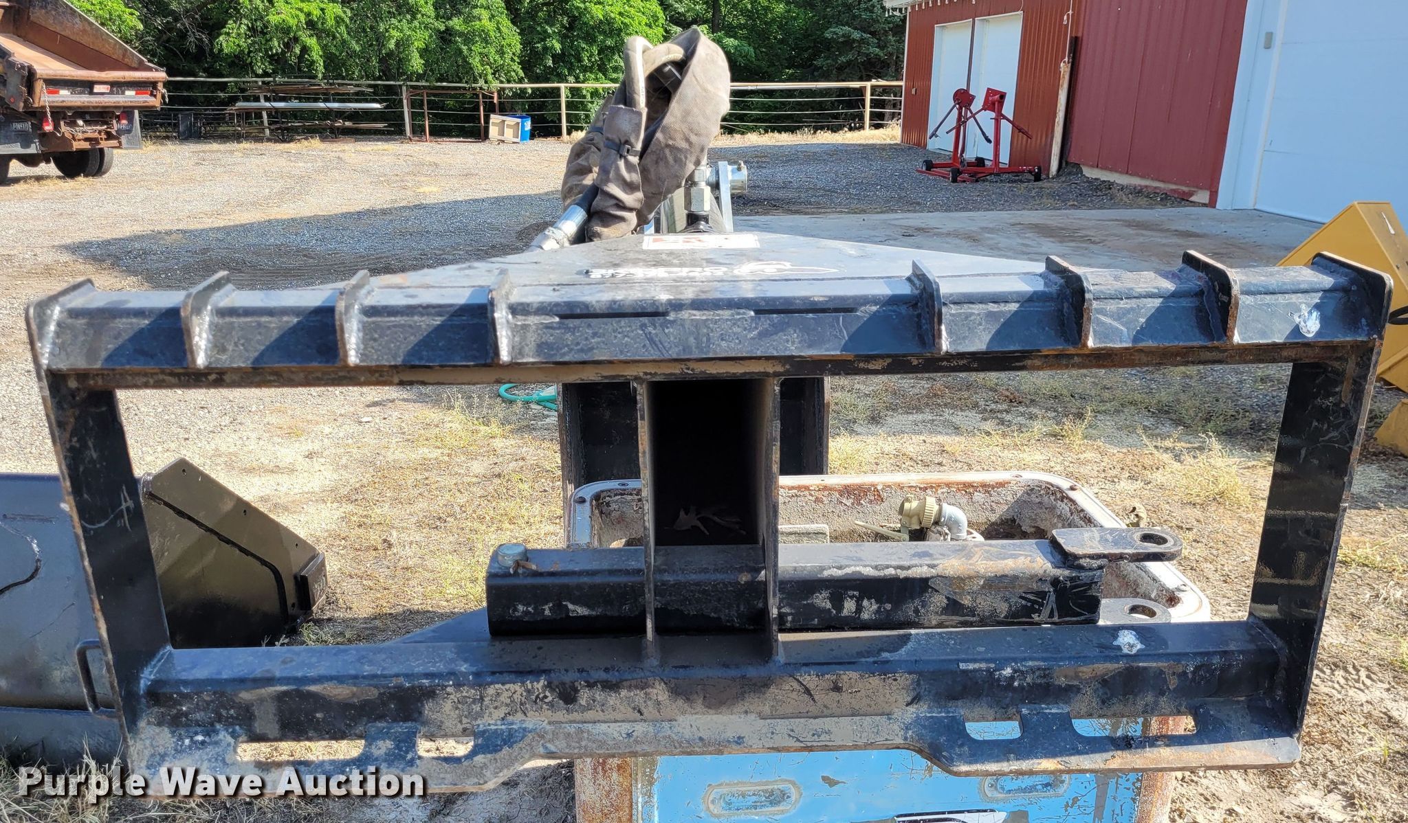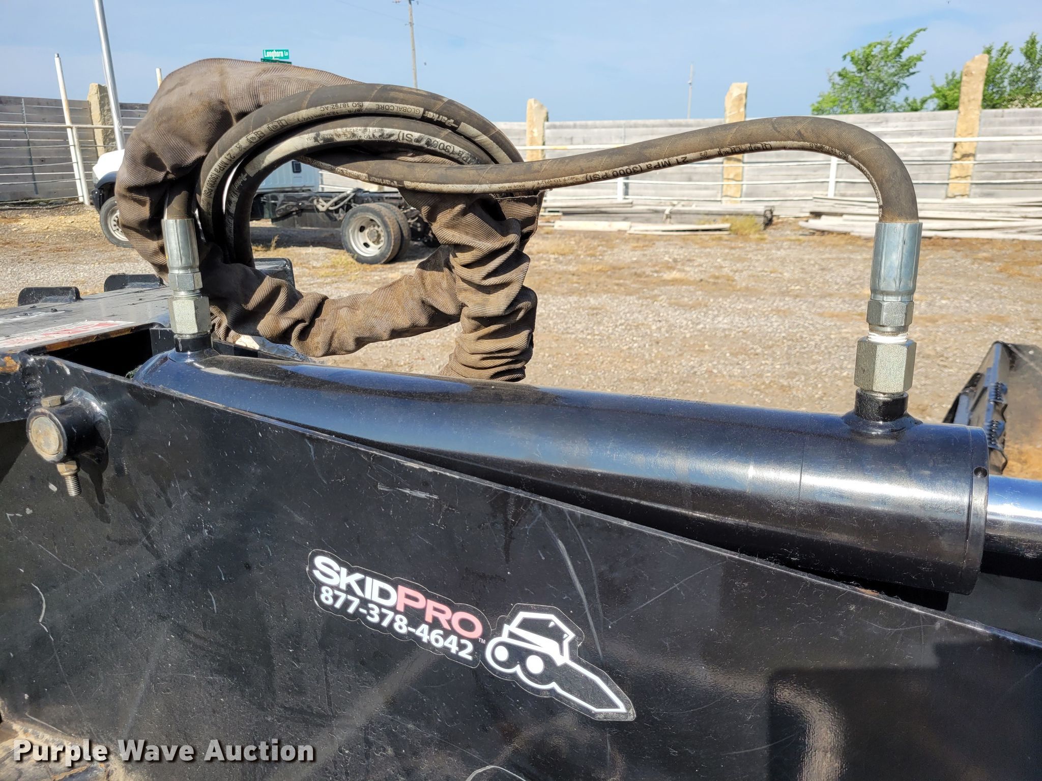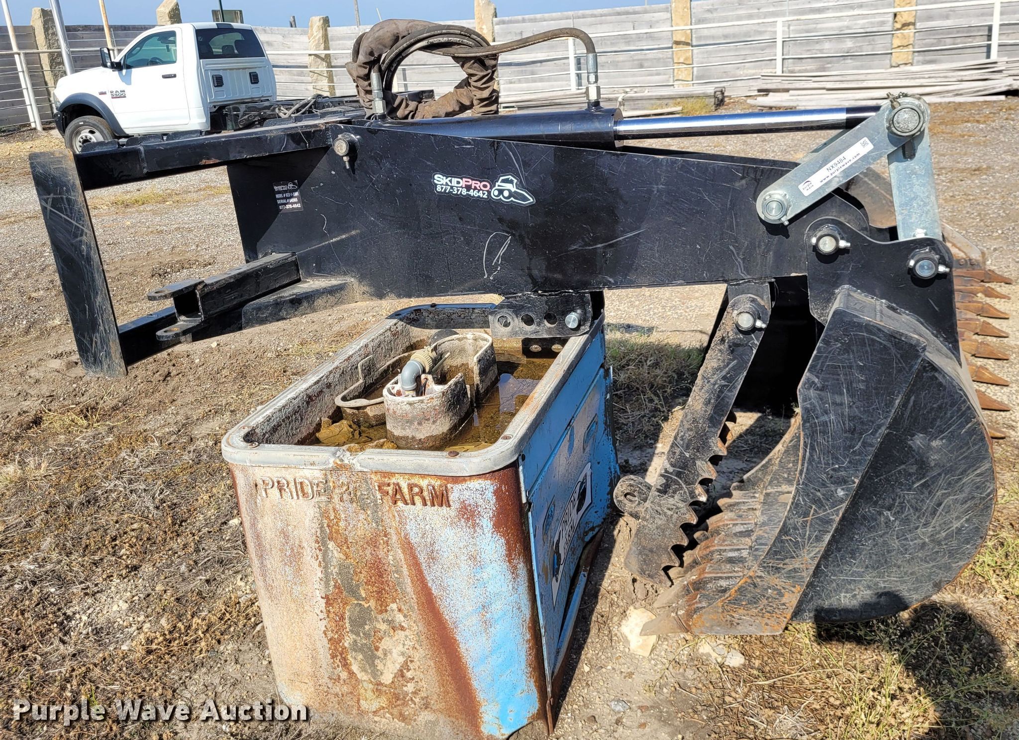 Purple Wave is selling a used Skid Steer Attach. in Kansas. This item is a SkidPro 62210001 skid steer backhoe with the following: Serial: 04565, Stick length: 5'5", Bucket, Width: 24", Teeth: 5, Thumb
