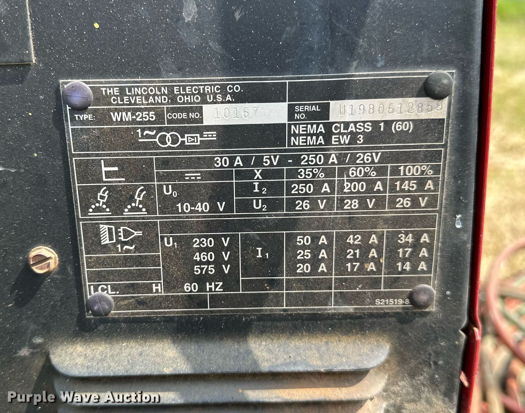 Purple Wave is selling a used Welder (Manual) in Oklahoma. This item is a Lincoln Electric Wire-Matic 255 welder with the following: Serial: U1980512859