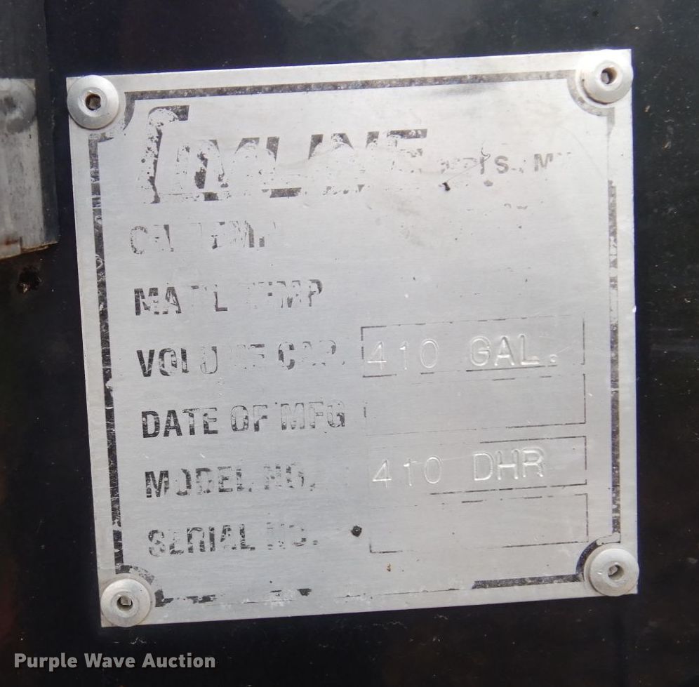 2015 Cimline 410DHL melter applicator. Engine. Isuzu 3CH1-SDZP1, Displacement: 1.27L, Cylinders: 3, Fuel type: Diesel. Features Tank Capacity: 410 gallons. Chassis Hitch: Pintle, Suspension: Spring , Brakes: Electric. Tires Size: ST225/75R15. Notes Non-operational hour meter. Wisconsin title. Title distribution may be delayed up to 14 days from verification of funds. Asphalt Maintenance & Paving. S1075 Wasson Drive. Spring Valley, WI 54767